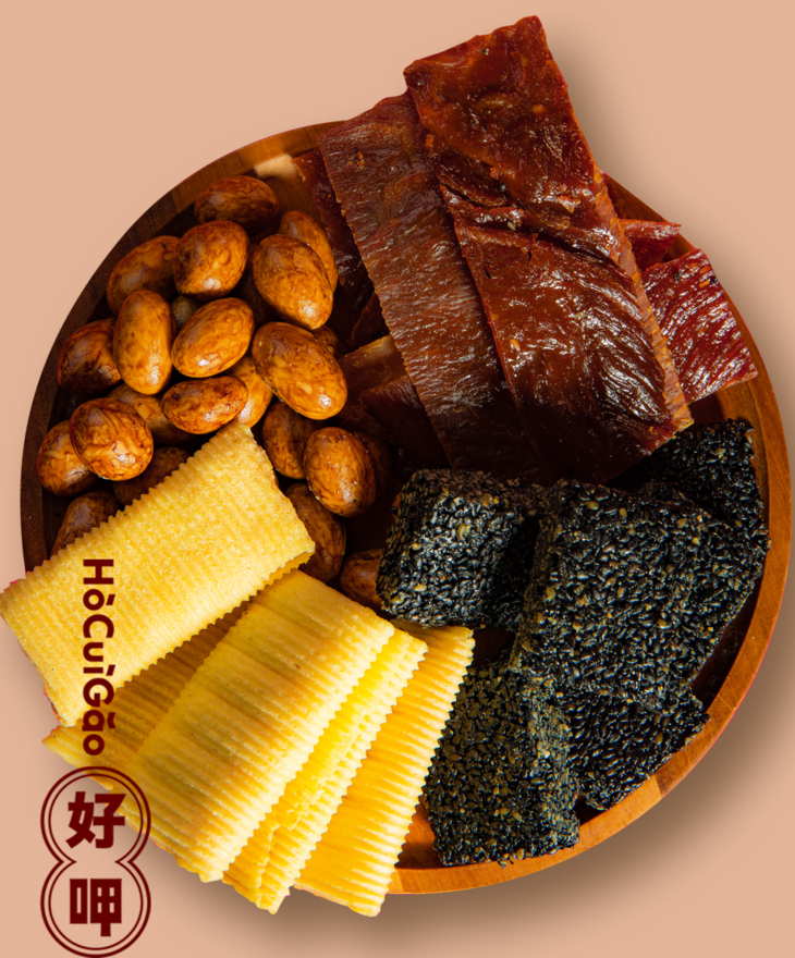这款集合了好嘴到最具特色的零食:原味鱼皮花生+5种果仁酥糖。