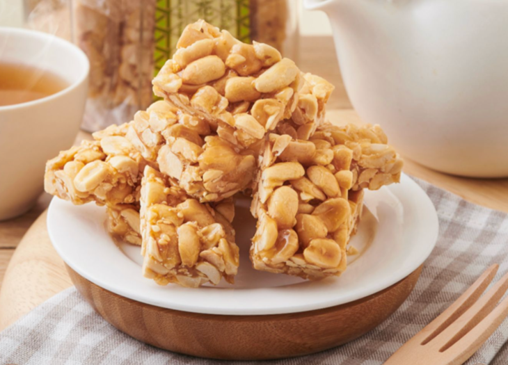 口味甜而不腻,质地松软酥脆。配料简单纯粹:只有黑白芝麻、花生仁、麦芽糖、海藻糖。