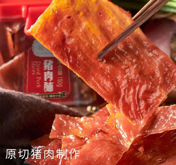 为啥小贵,因为是原肉原切!要知道市面上大多数肉脯都是碎肉打成肉末压制成型的。