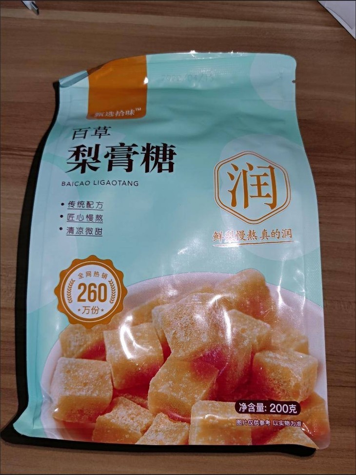 制作工艺采用传统手工熬制,新鲜雪梨熬出来的梨膏辅以罗汉果,川贝,胖大海等多种药材碾成的粉末,冷却后切割出成型的梨膏糖,用料健康无任何添加剂,