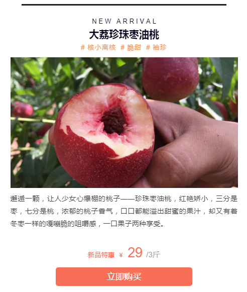本周有:糖心蜜薯、霞浦海带、珍珠枣油桃、民勤南瓜、榆树面饸饹、冰淇淋酸奶