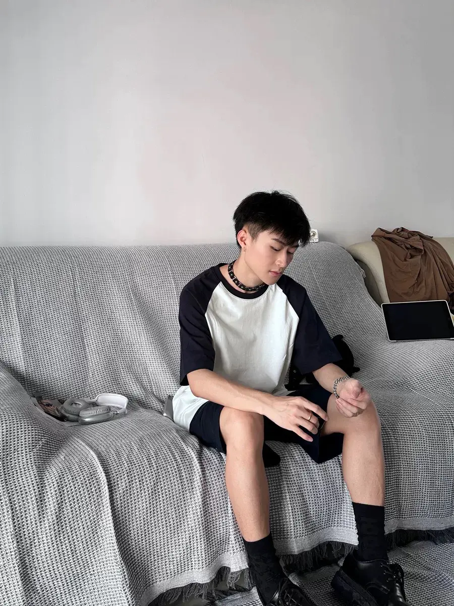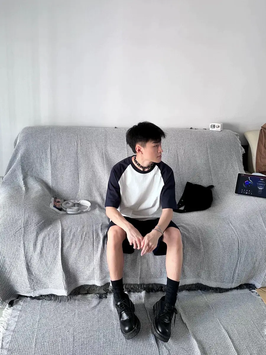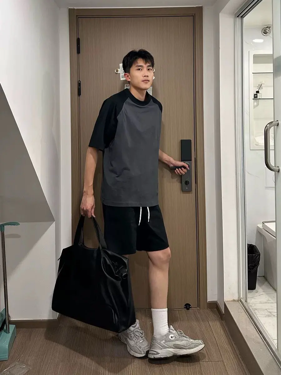 纯棉的插肩上衣,易洗易干的五分短裤,让你在30℃下暴走两万步也能保持后背干爽。