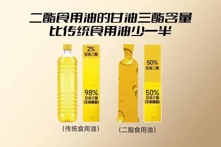 二酯油比普通食用油的脂肪(甘油三酯)少一半,它的主要成分是甘油二酯,也被医学界称为“脂肪炸弹”,能加快脂肪分解,减少皮下、内脏脂肪的囤积,对三高族尤其是高血脂人群的健康有很大帮助。