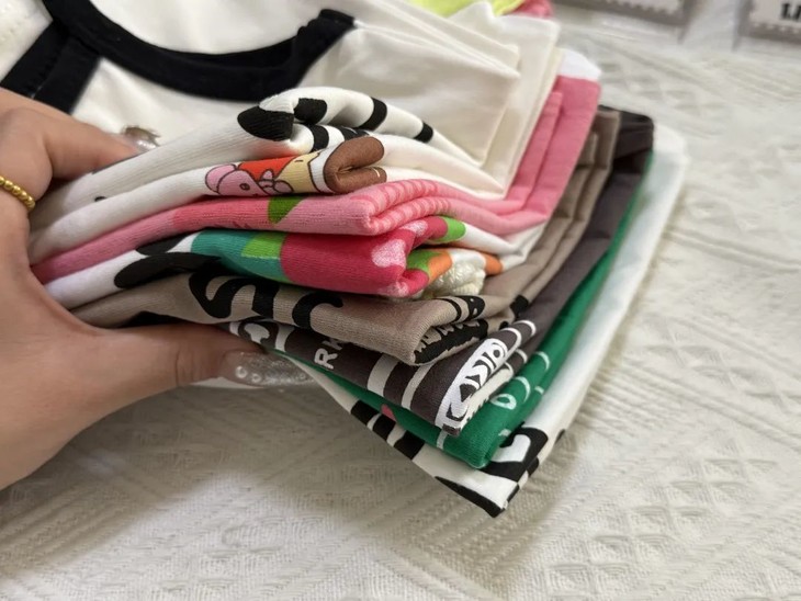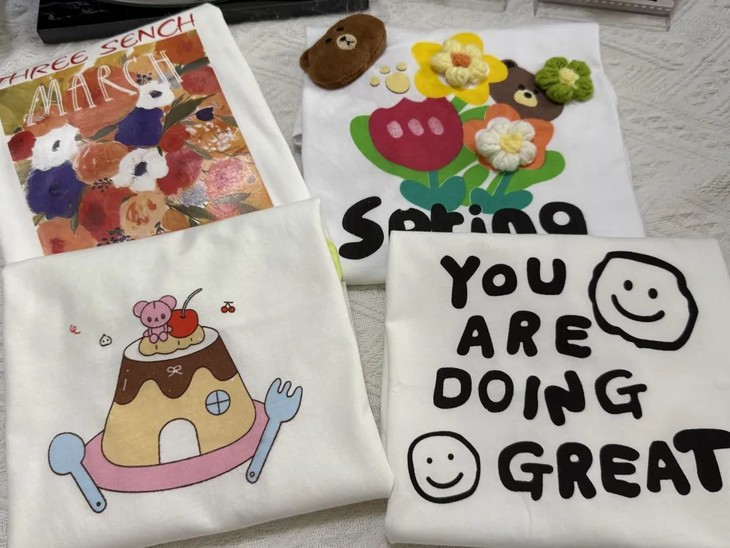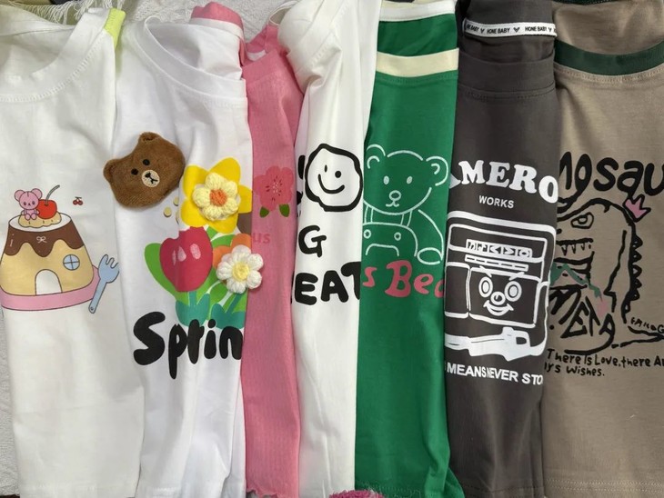 我们这次选的这款短袖,足足有48种不同的款式可选,各种多巴胺的撞色设计、卡通印花、立体印花、字母印花,小飞袖、插肩袖、吊带、坎肩......应有尽有。