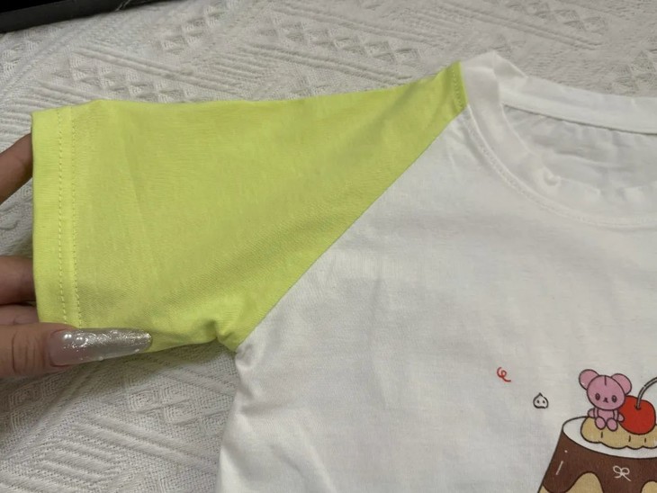 很多廉价儿童短袖,一过水就掉色不说,洗出来还皱皱巴巴的,跟烂抹布没什么两样。