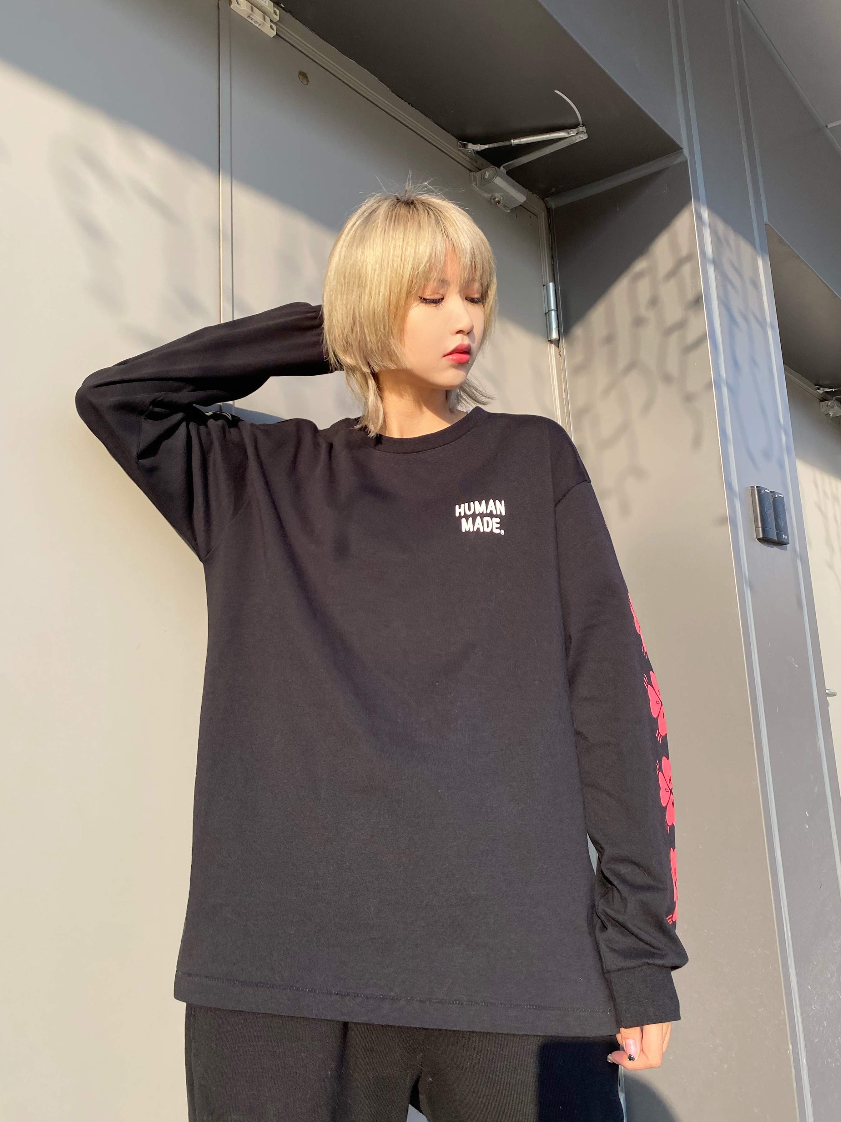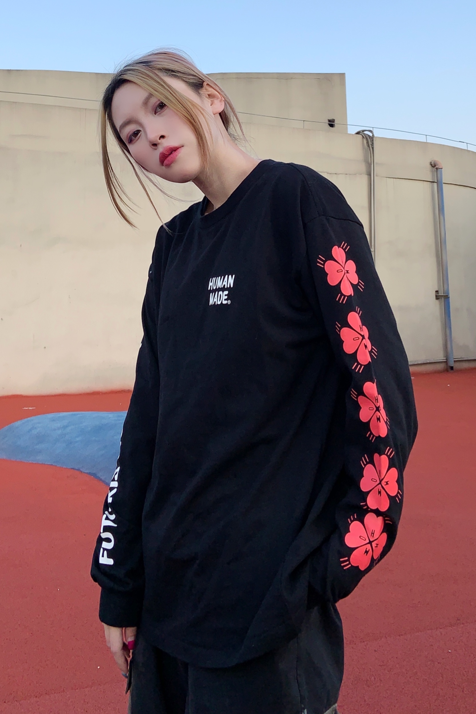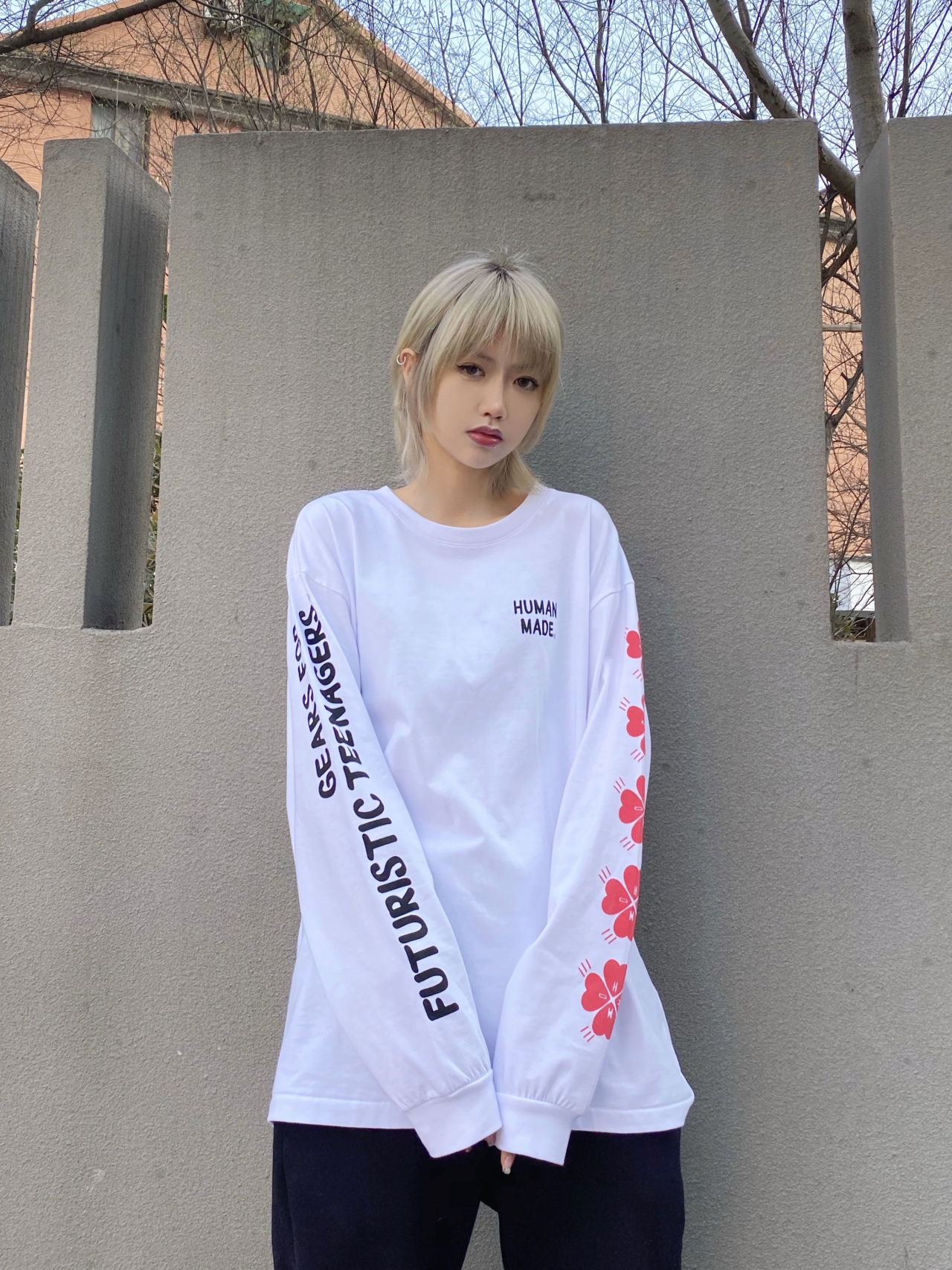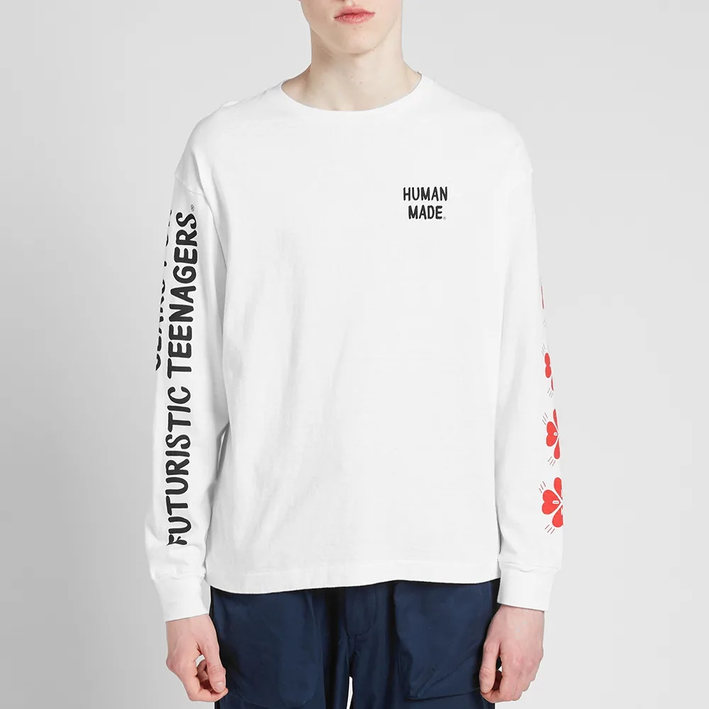 HUMAN MADE 圆筒工艺 重工印花情侣款长袖T恤2色