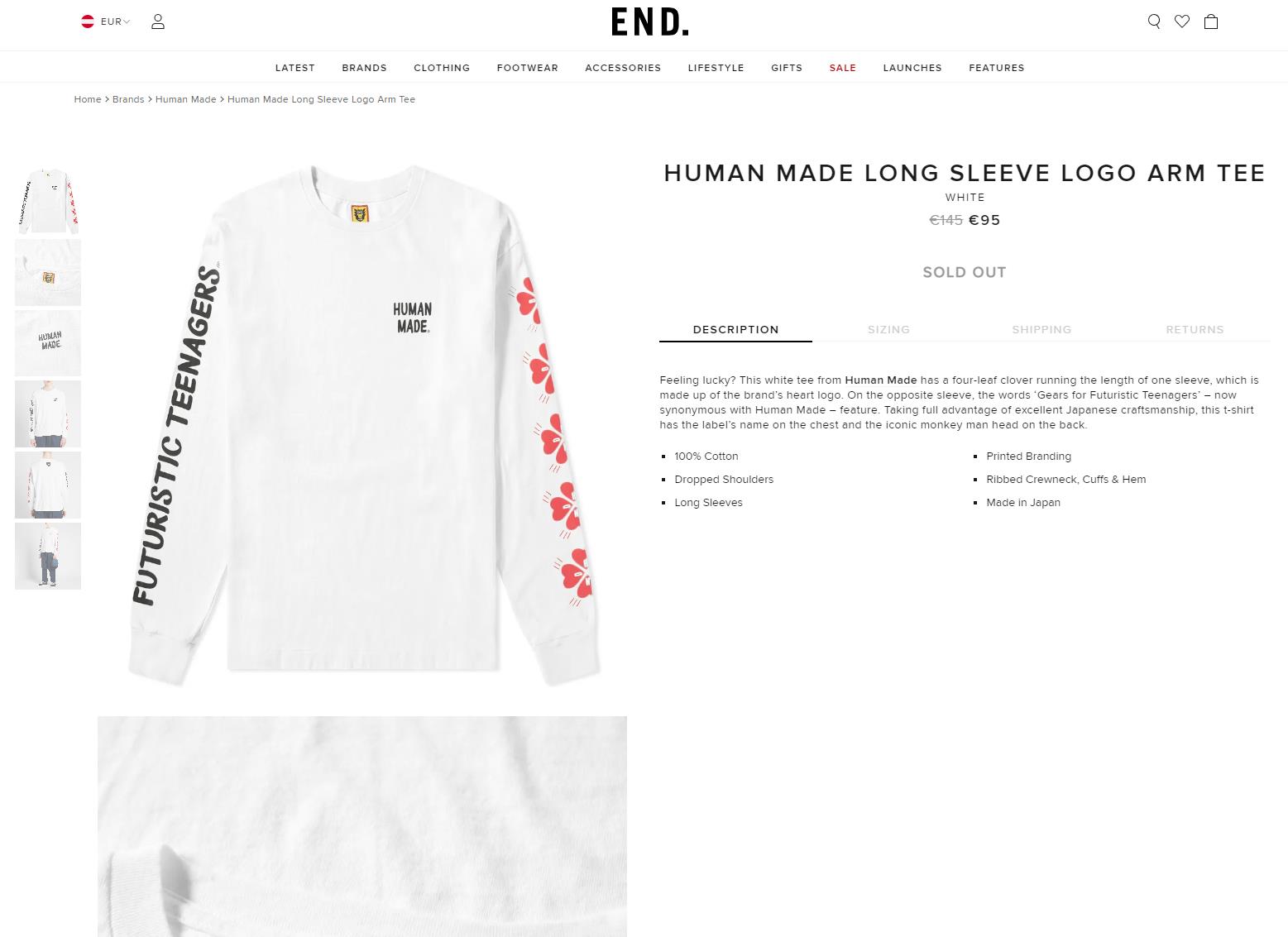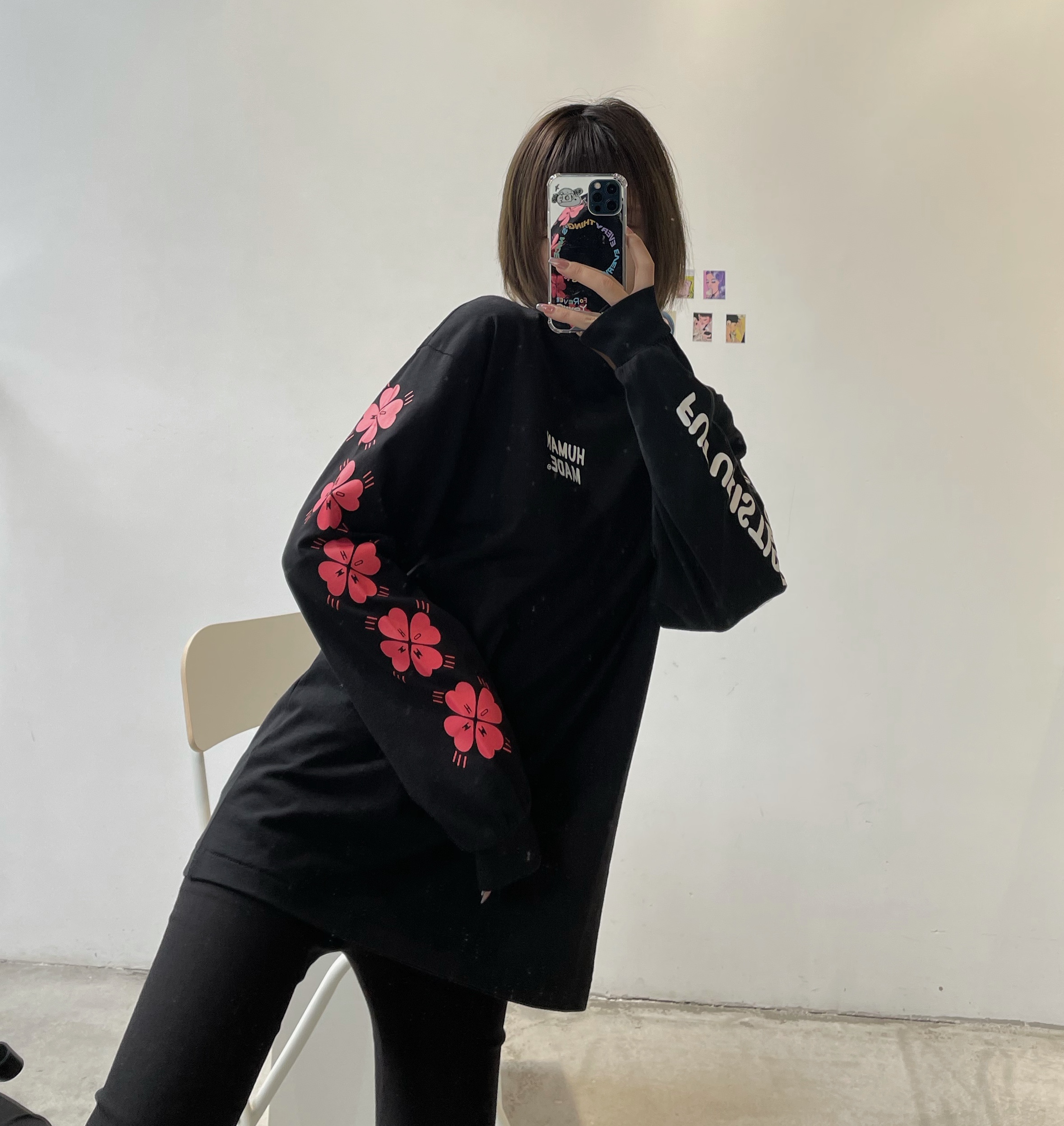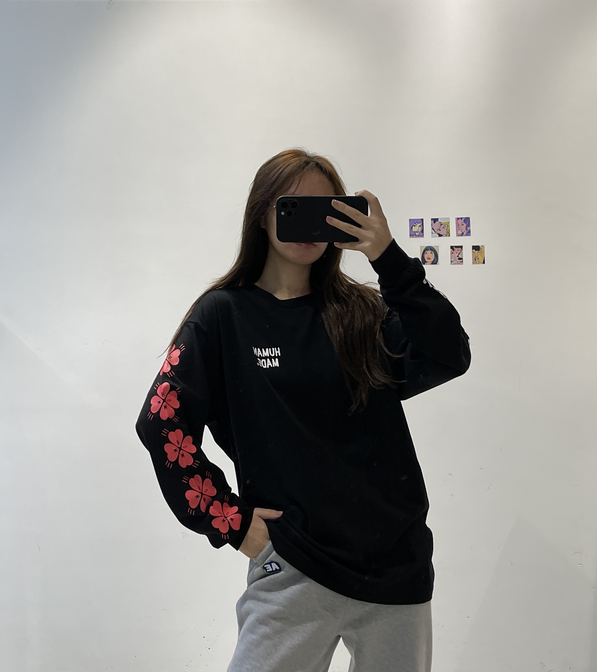 HUMAN MADE 圆筒工艺 重工印花情侣款长袖T恤2色