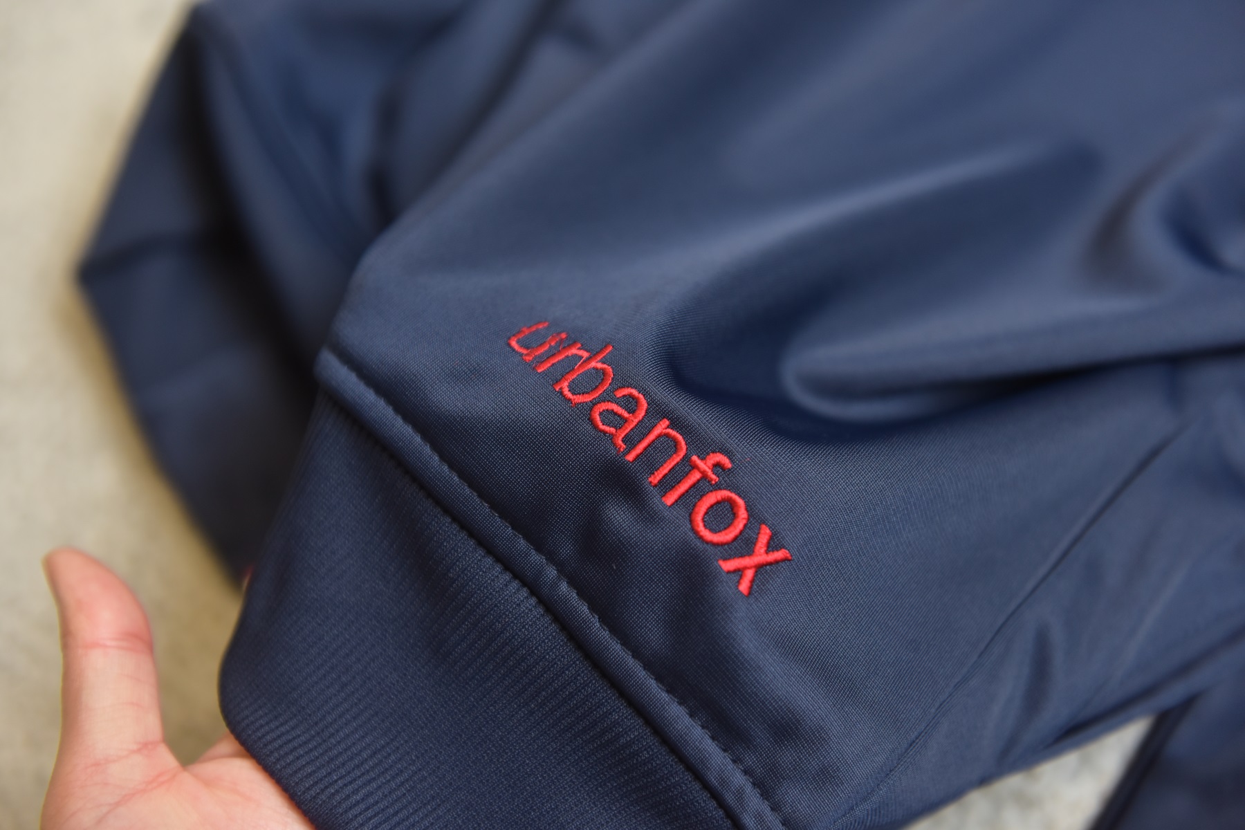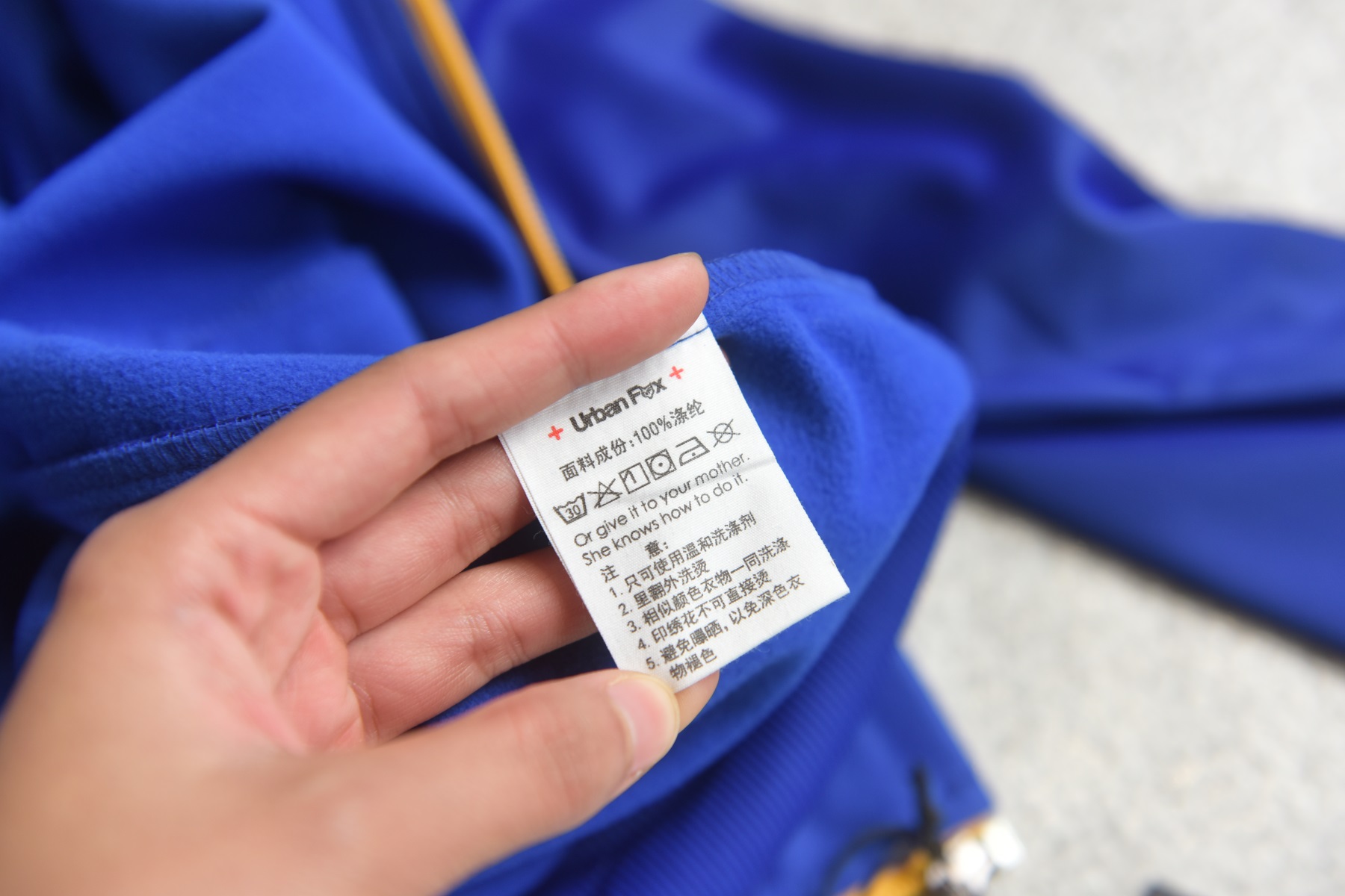 净色大身 主门襟做了撞色的设计处理 ykk客供拉链头表面带URBANFOX 狐狸的凹凸logo刻磨