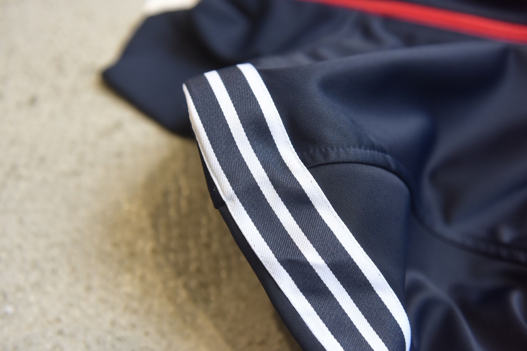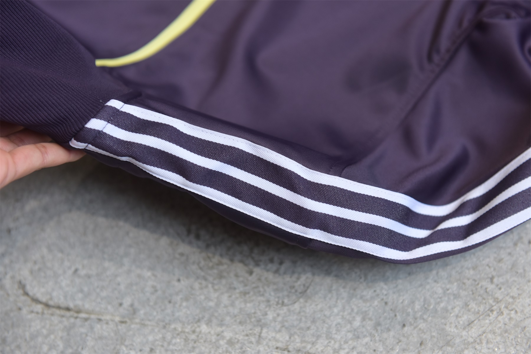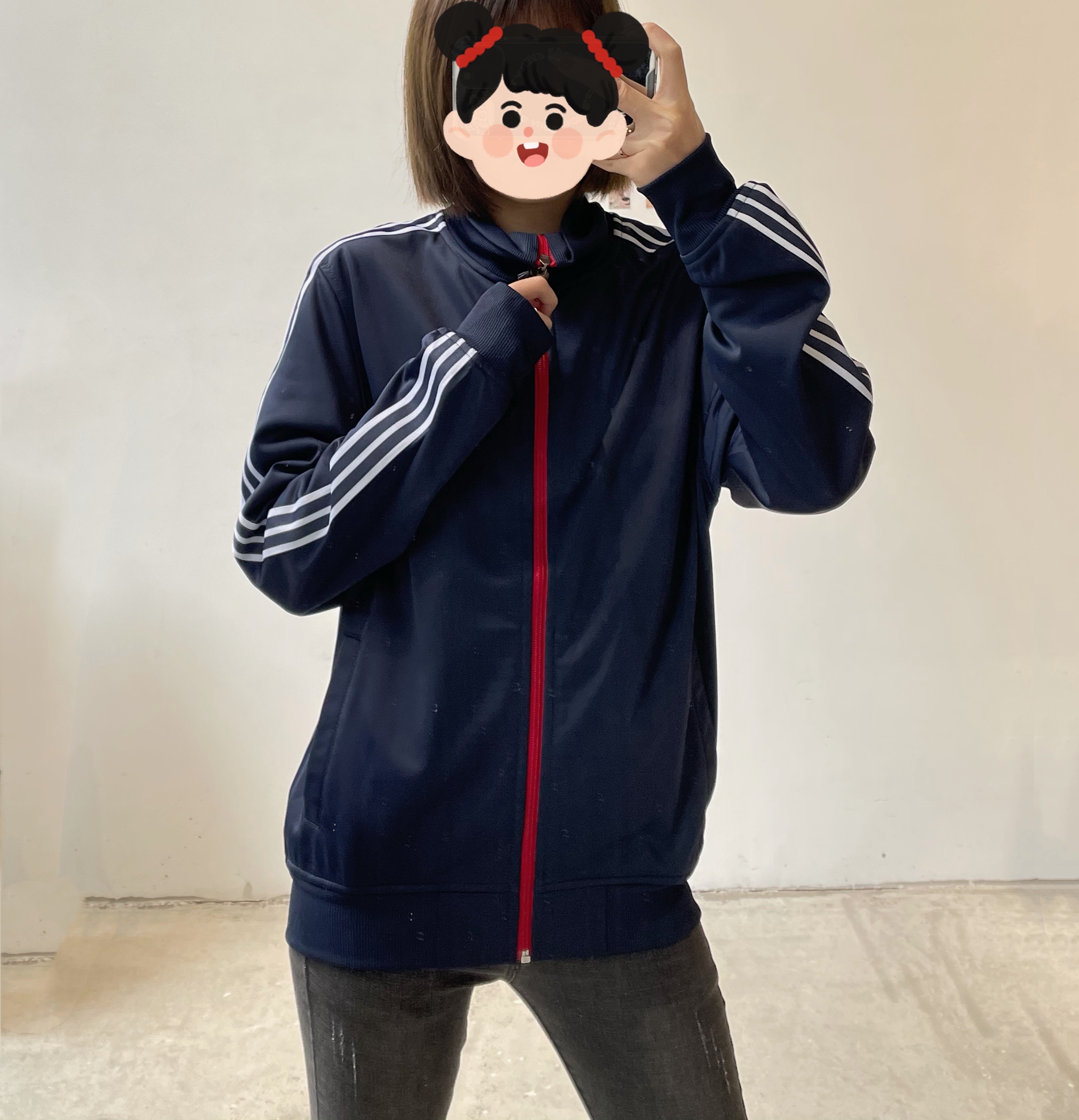 两侧袖子三条杠的拼接 增加了运动的复古气质