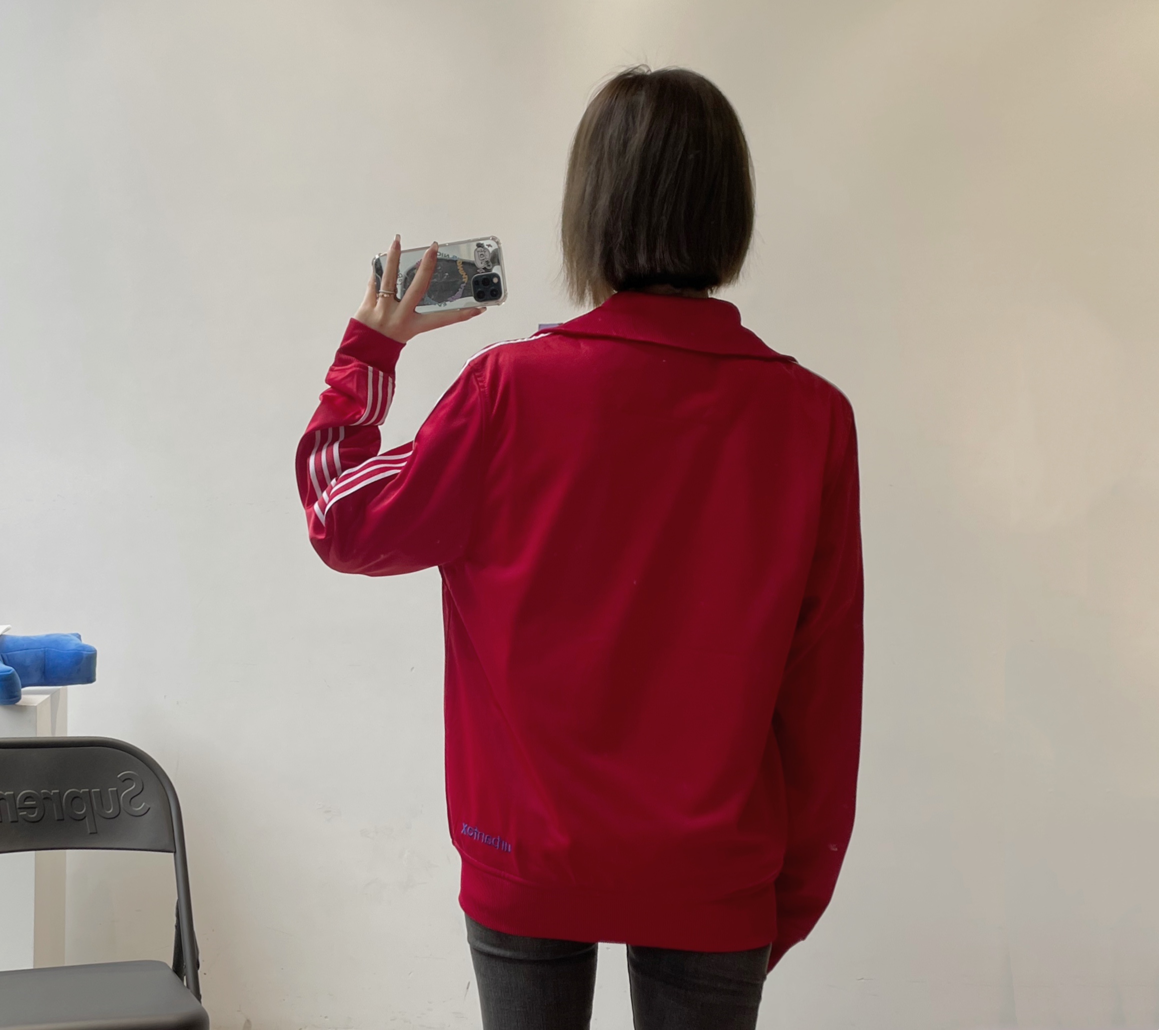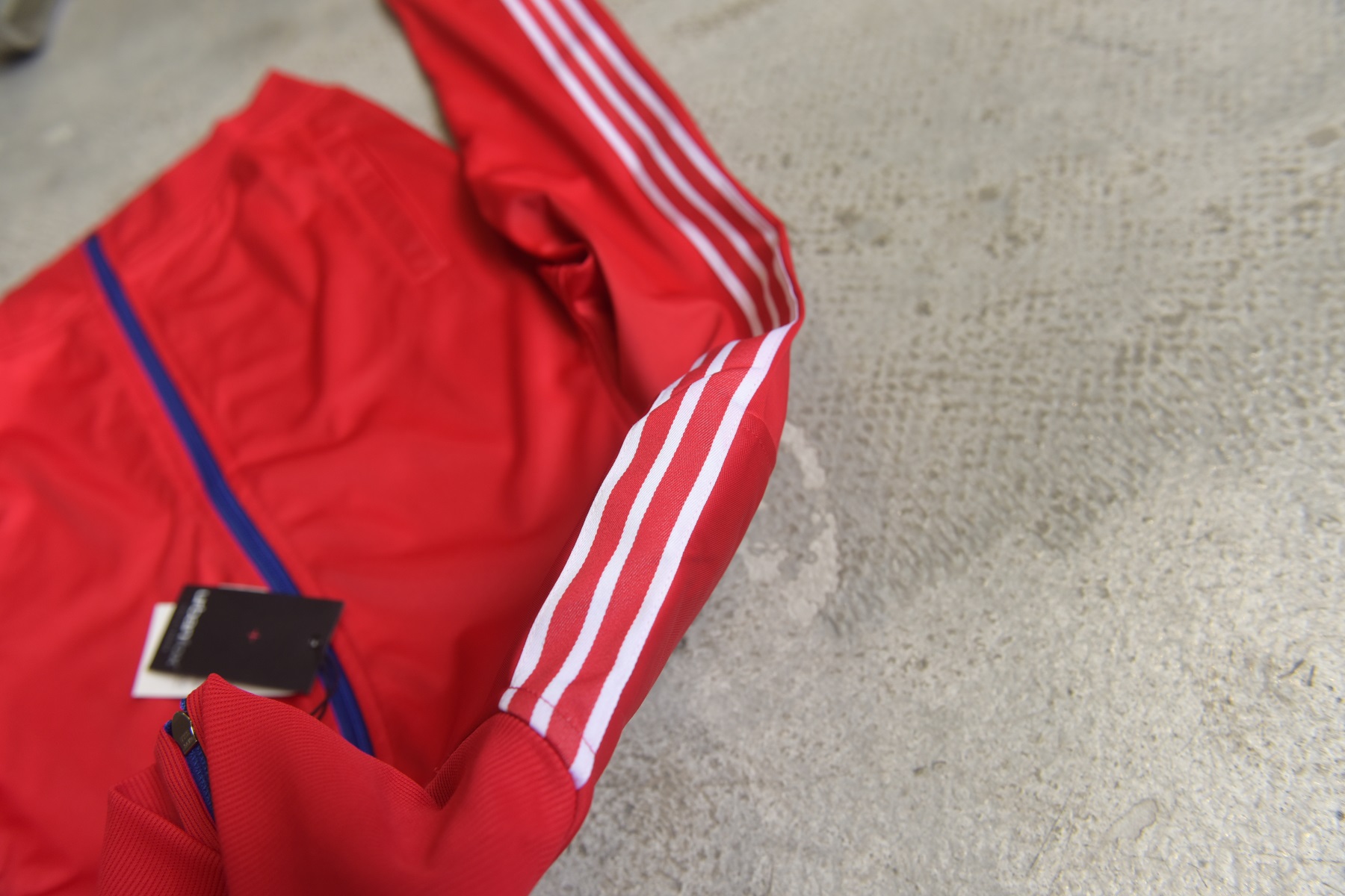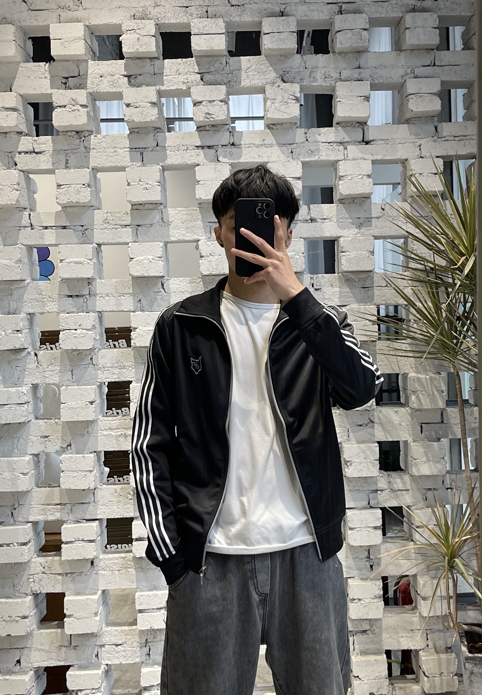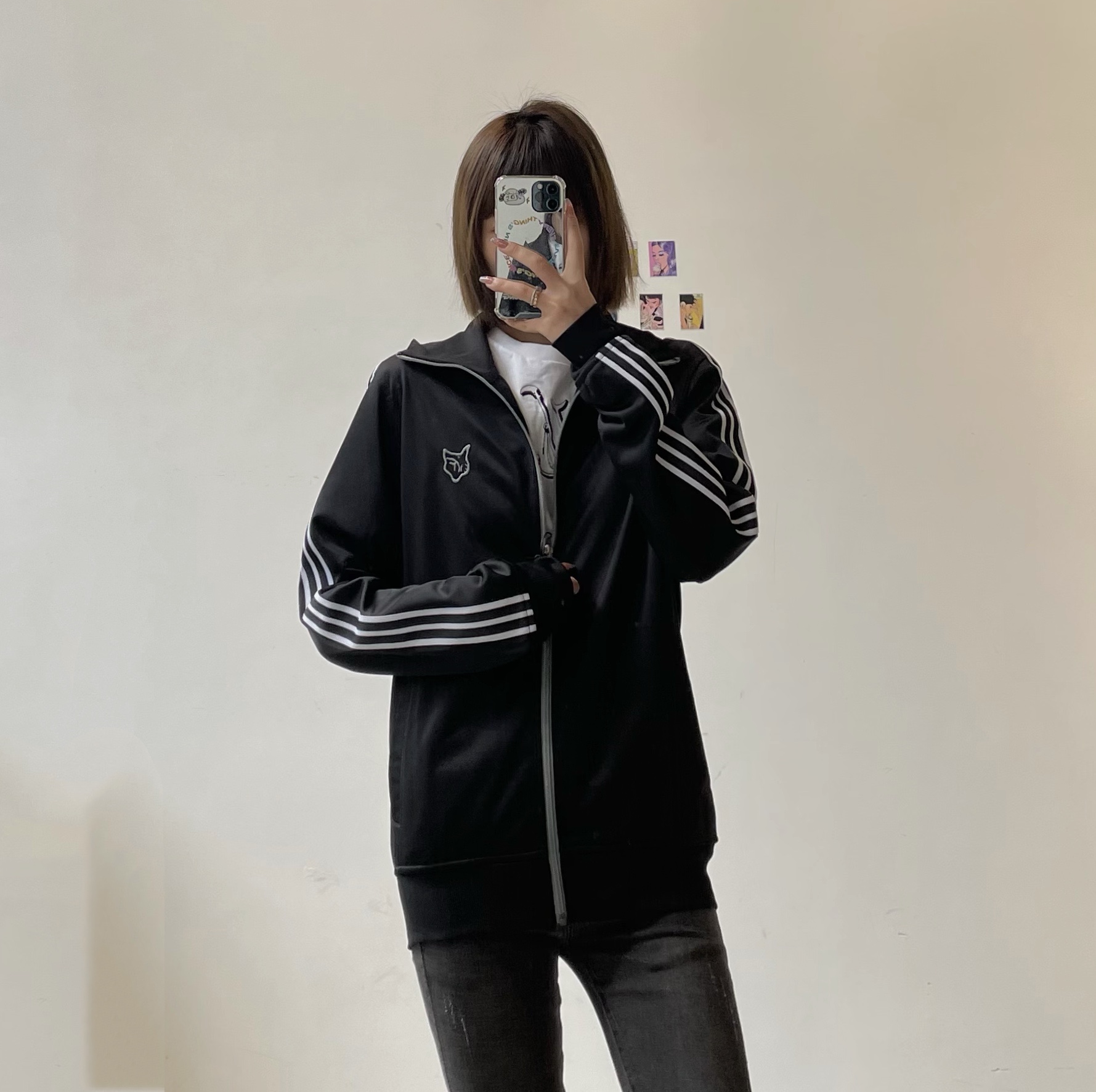 两侧袖子三条杠的拼接 增加了运动的复古气质
