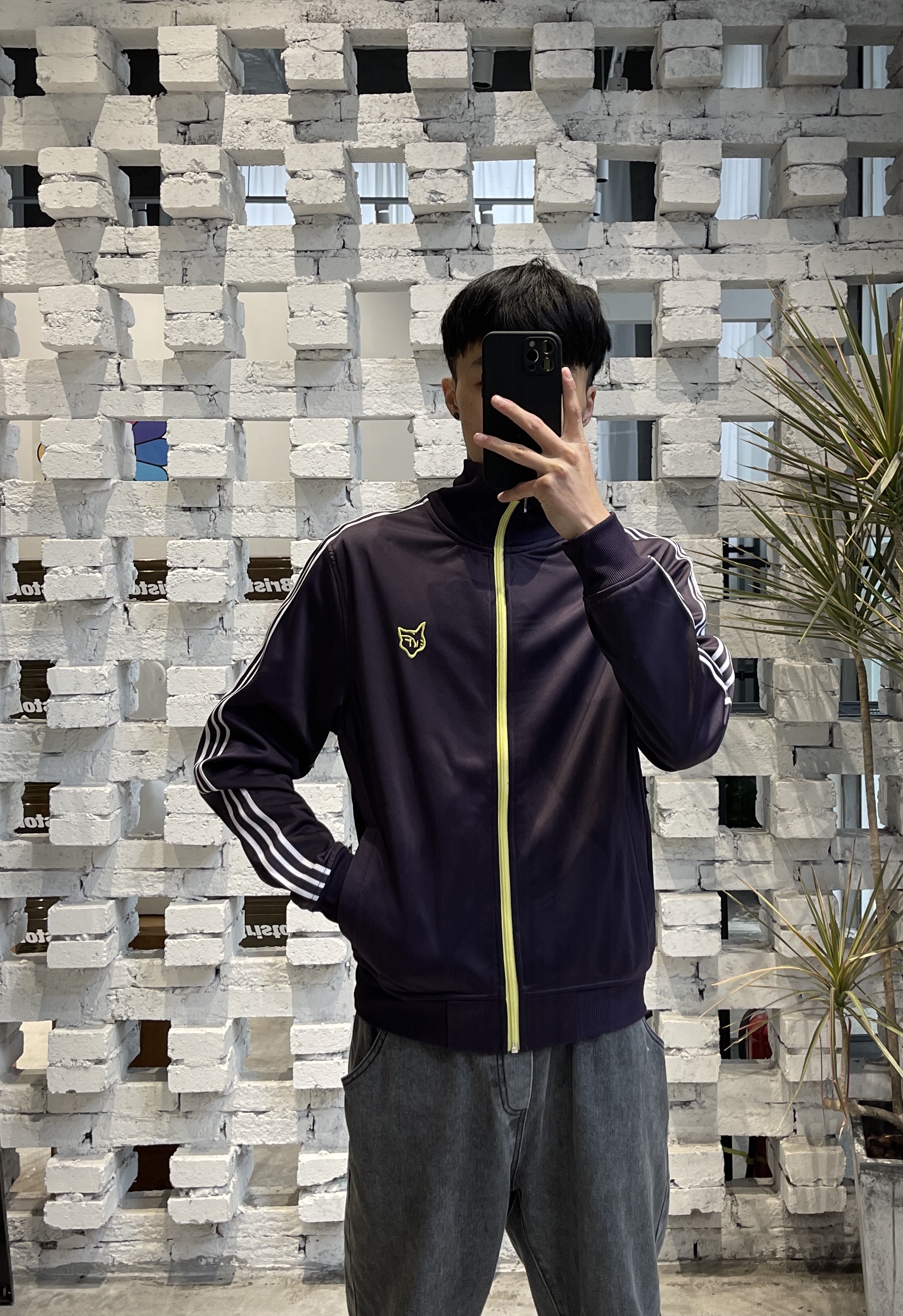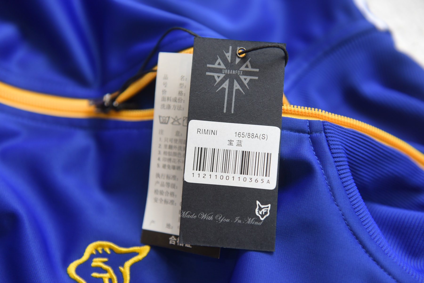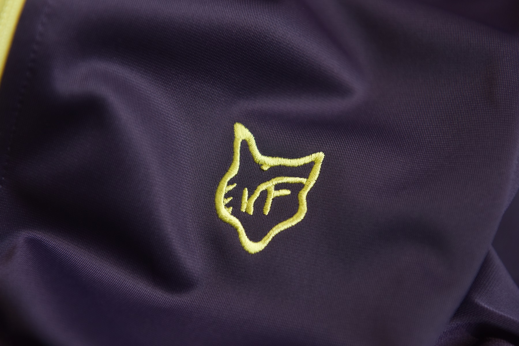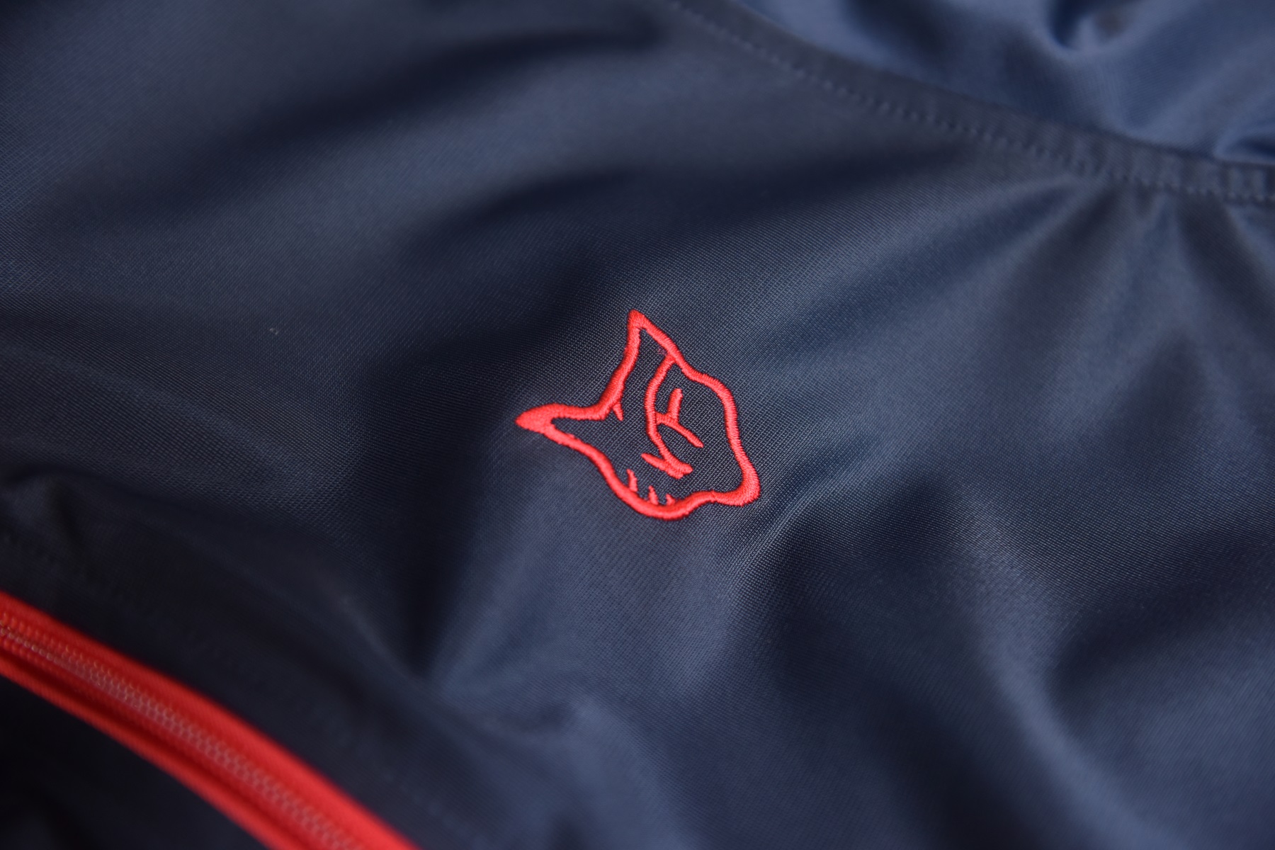 胸口一套狐狸刺绣标识,门襟撞色和刺绣及背面的字母刺绣同色和大身做了撞色的视觉冲击