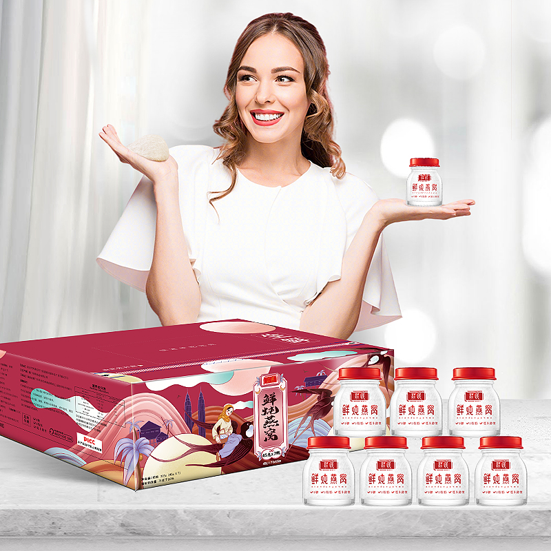 高端的进口鲜炖燕窝实现了便捷的同时营养成分在外包装上也明显体现,其中每100g庄民鲜炖燕窝中的唾液酸大约在330mg,远远高于普通燕窝6-8%,唾液酸又称燕窝酸是日常保养重要的营养元素之一,含量越高价值也就越高。鲜炖礼盒装,一盒7瓶,每瓶45g,这样一瓶小小的鲜炖燕窝,出门随身携带,放包里、口袋中,无需泡发炖煮,随时随地开盖即食补充体内营养,低糖0热量根本无需担心有负担。