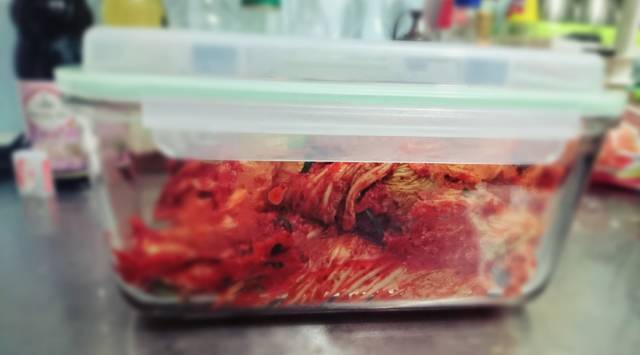 5、找来密封罐,放入白菜坯,盖上盖子,放在不见光的地方,嘴急的在存储1~4天里吃,能耐住性子的1个月以后吃,这时候味道最好!