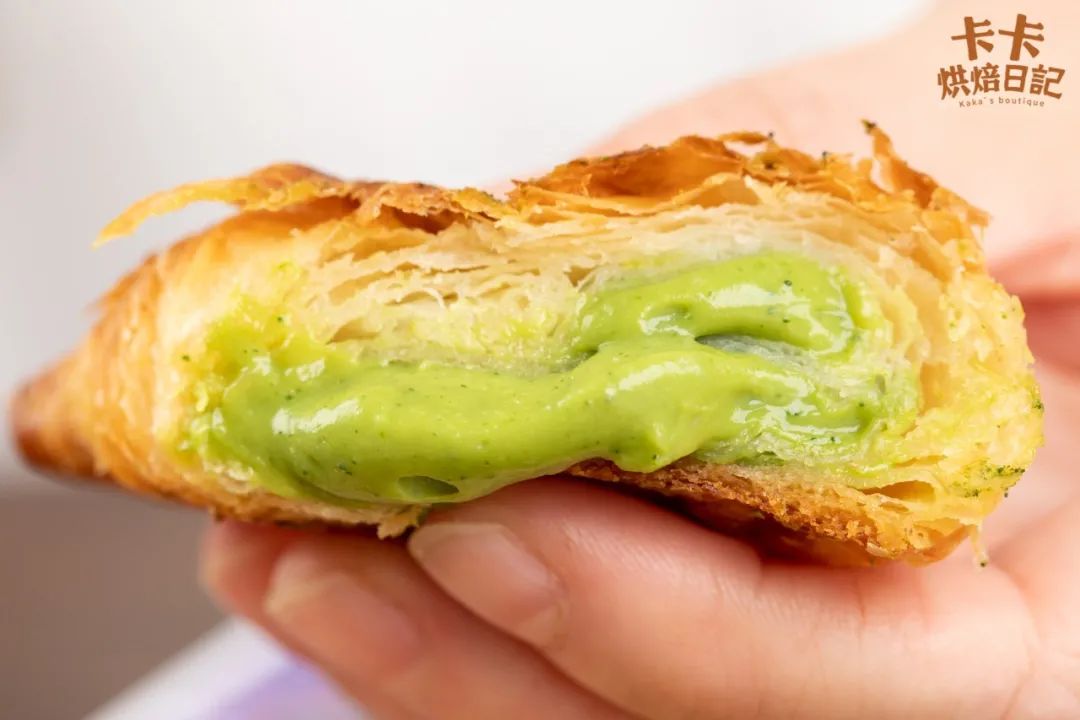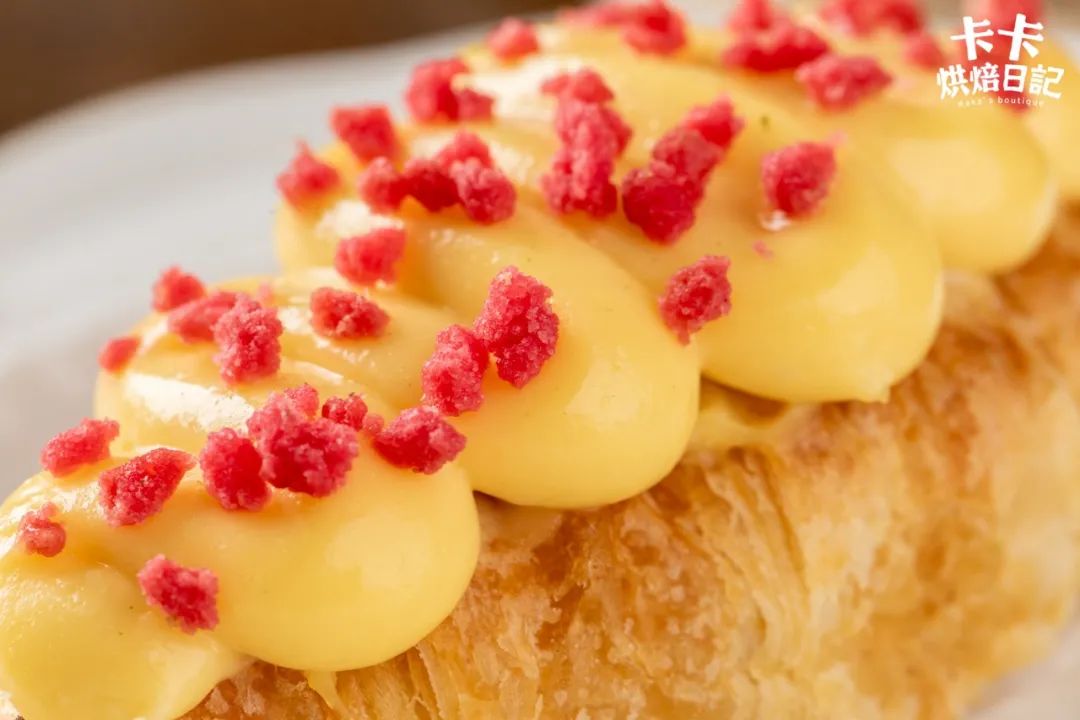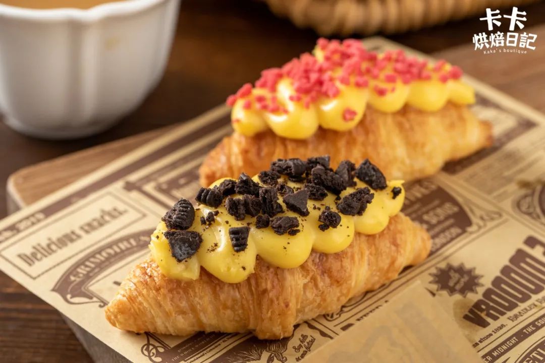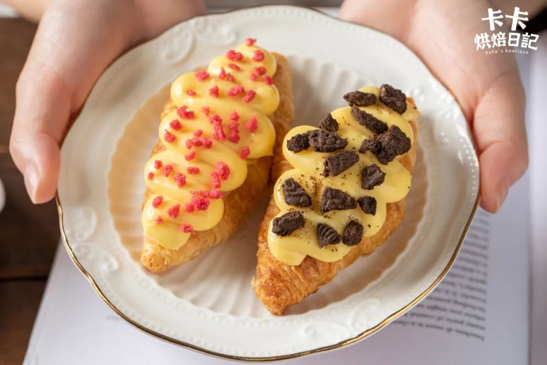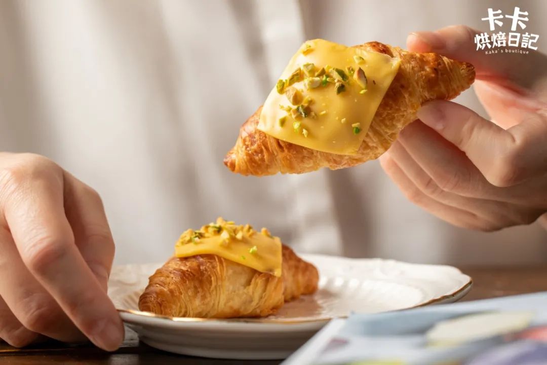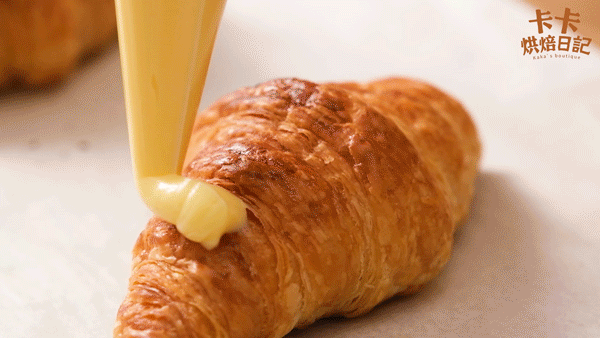 可颂因为有了香甜柔滑的卡仕达酱加持,吃起来满口都是甜蜜的幸福感。