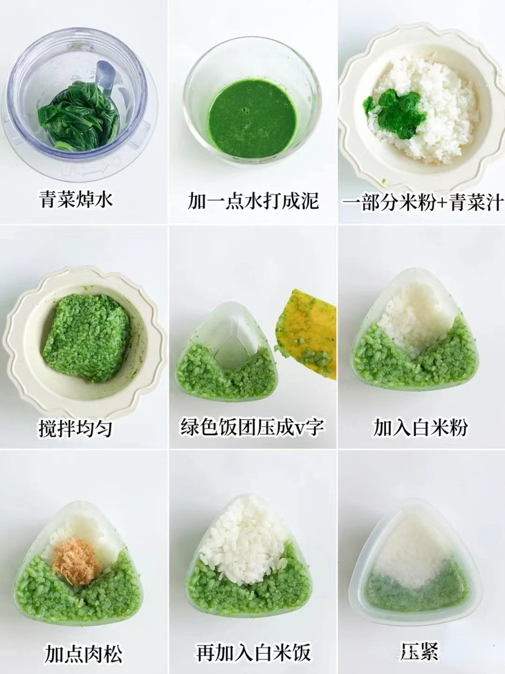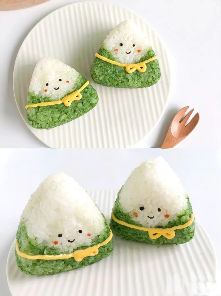 米饭,肉松,青菜(菠菜)三角饭团模具,芝士片