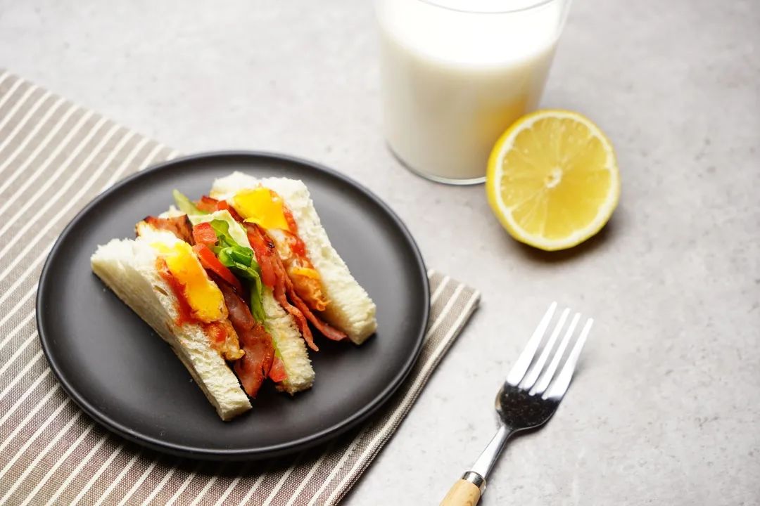 夹的肉可能是加工肉制品培根,切片面包本身可能是白面包还可能加了糖。