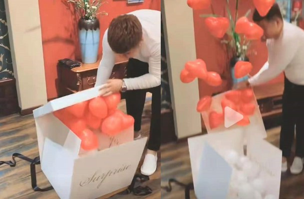 只要打开纸箱子,氢气球就会飞出来,这样的浪漫,哪个女孩子会拒绝呢?