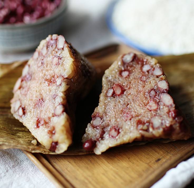 特点:三角粽的形状比较好看而且特别,可以制作成甜、咸两种口味,蛋黄、叉烧、蜜枣都是不错的馅料。