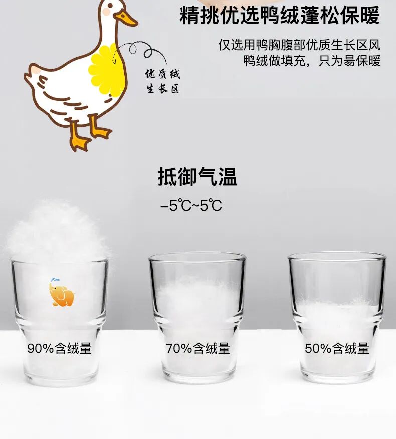 相信经常为孩子选羽绒服饰的妈妈们,都知道买羽绒服饰,最先要看的就是充绒量和蓬松度。
