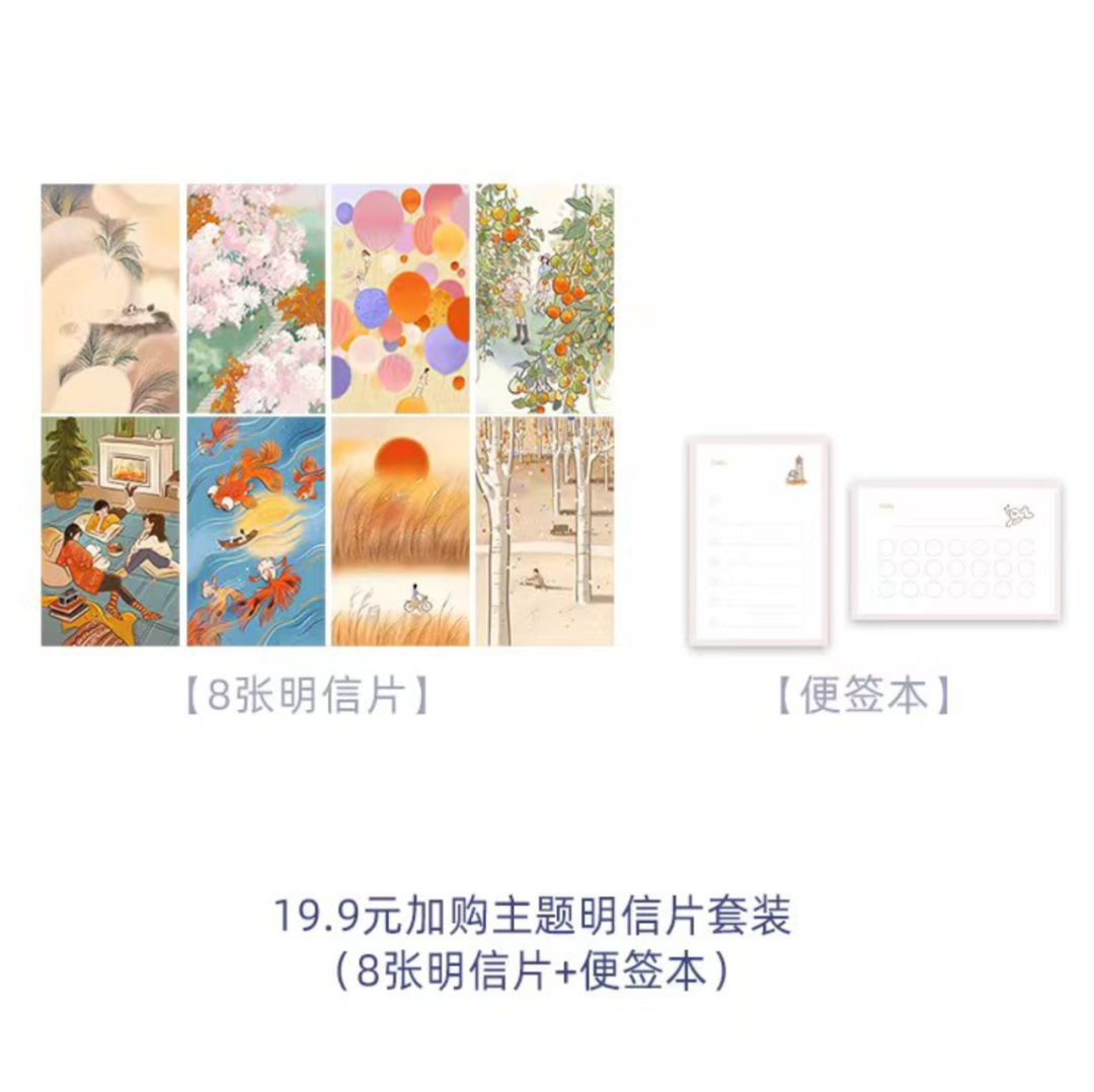如果你想要更多手帐插画的明信片,还可以再花19.9元,买一整套(8张)明信片,再加一叠便签~▼