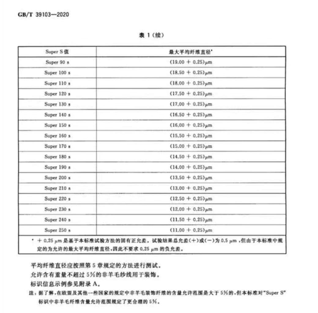 ▲GB/T 39103-2020超细羊毛机织物标识Super S代码定义的要求