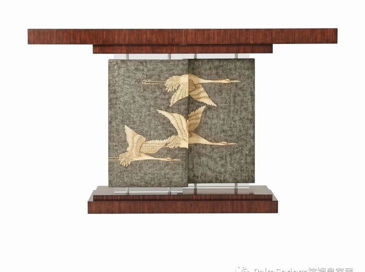这款耀目华丽的TA金鹤玄关柜,将西方传统绘画的立体细腻,与东方山水文人画的写意,完美结合到了一起。鹤的展翅姿态与和羽翼等细节精致刻画,都栩栩如生,同时保有留白意境。