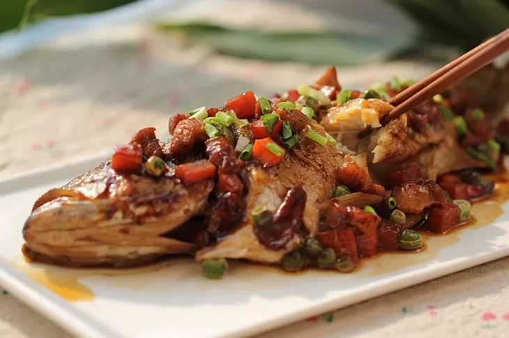 干烧鲈鱼,色泽红润,微辣带甜,口感层次非常丰富。