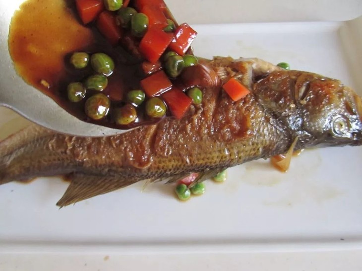 7、把汁浇在鱼身上,撒些小葱末,上桌吧!