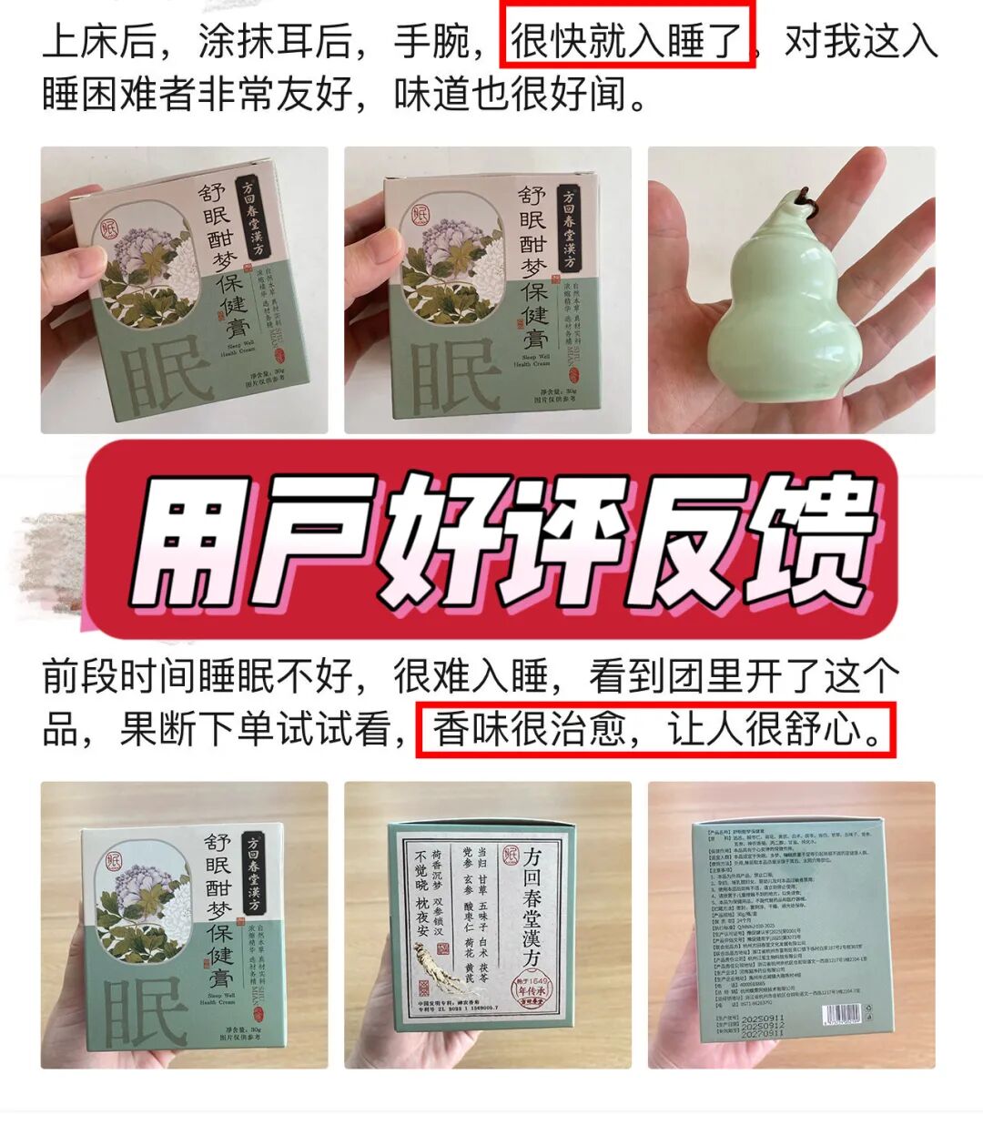 而方回春堂的这款睡眠膏,坚持“无几素、无.依赖性成分”的原则,通过外涂调节身体机能