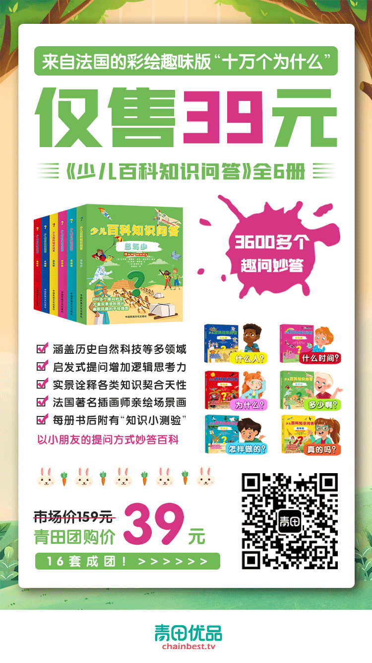 所以小青特别挑选了这套《少儿百科知识问答》,帮助宝宝来解答世间的所有奥秘。特别开心的是,这套原价159元的百科书,经过小青的努力争取,现在以39元的优惠价格给到大家哟,相当于不到2.5折的价格,一本百厚的百科全书,才6.5元,真是太划算了。