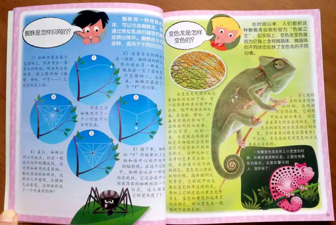 这本趣味百科书里面的知识覆盖了动物、自然现象、科学技术、人体、日常生活等几个领域,讲述了这些领域的一些科学知识,通过一问一答的形式为孩子解答很多动物和自然现象背后的原因,让孩子受益匪浅。
