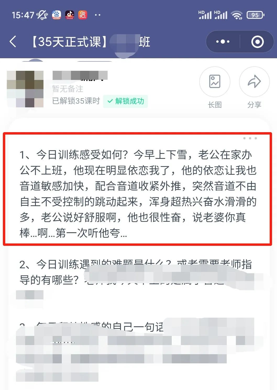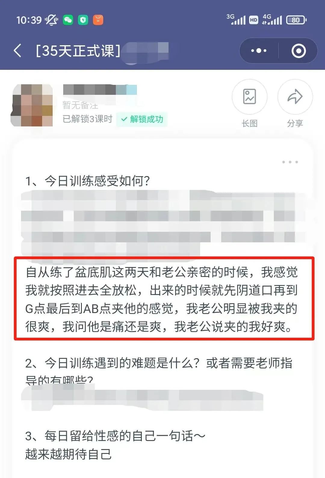 比如:“私处黑色是正常的吗?”“我该怎么委婉告知老公,他那方面不行,要去看男科?”等,可以发在群里,群策群力!