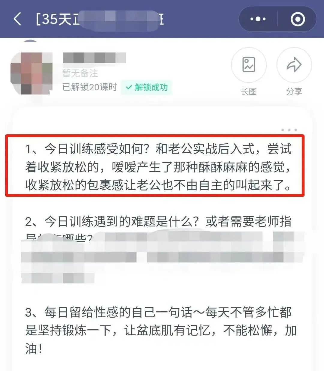 在我穷追不舍的追问下,加了她老婆微信,并被告知一个关键点:“盆底肌”发达,是提高夫妻生活硬实力的关键。