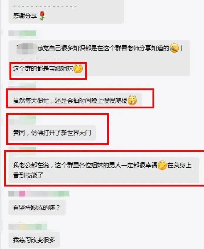 连群里姐妹的老公都说:“这个群各位姐妹的男人一定都很幸福,都在我身上看到技能了”哈哈