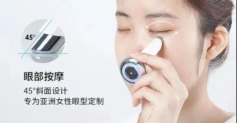 眼部按摩头:采用了45°斜面设计,专为亚洲女性眼型定制。