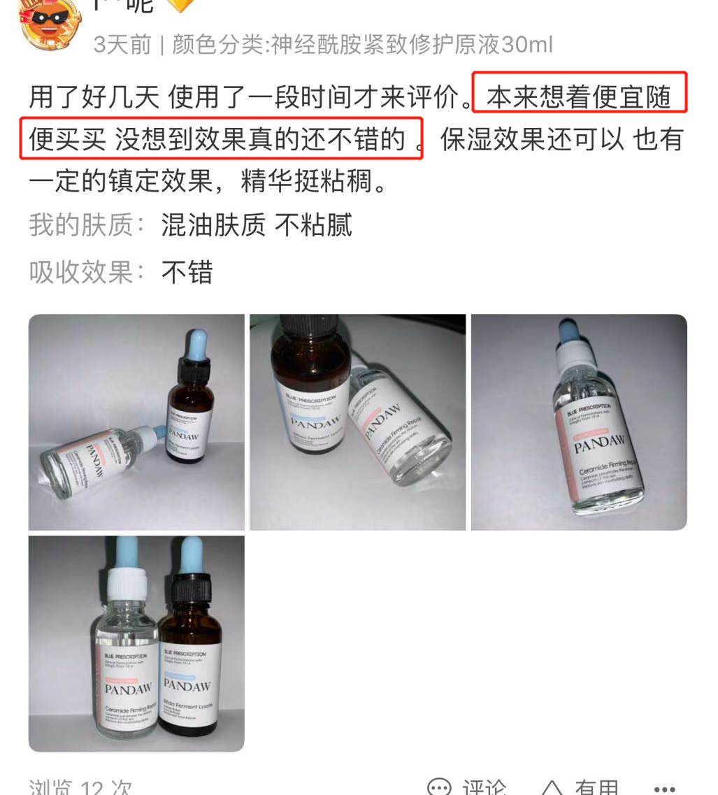 我就试用了这款修复原液,还搭配了她家的同系列神经酰胺面膜,一周皮肤就稳定了很多,小瑕疵在不断减少。