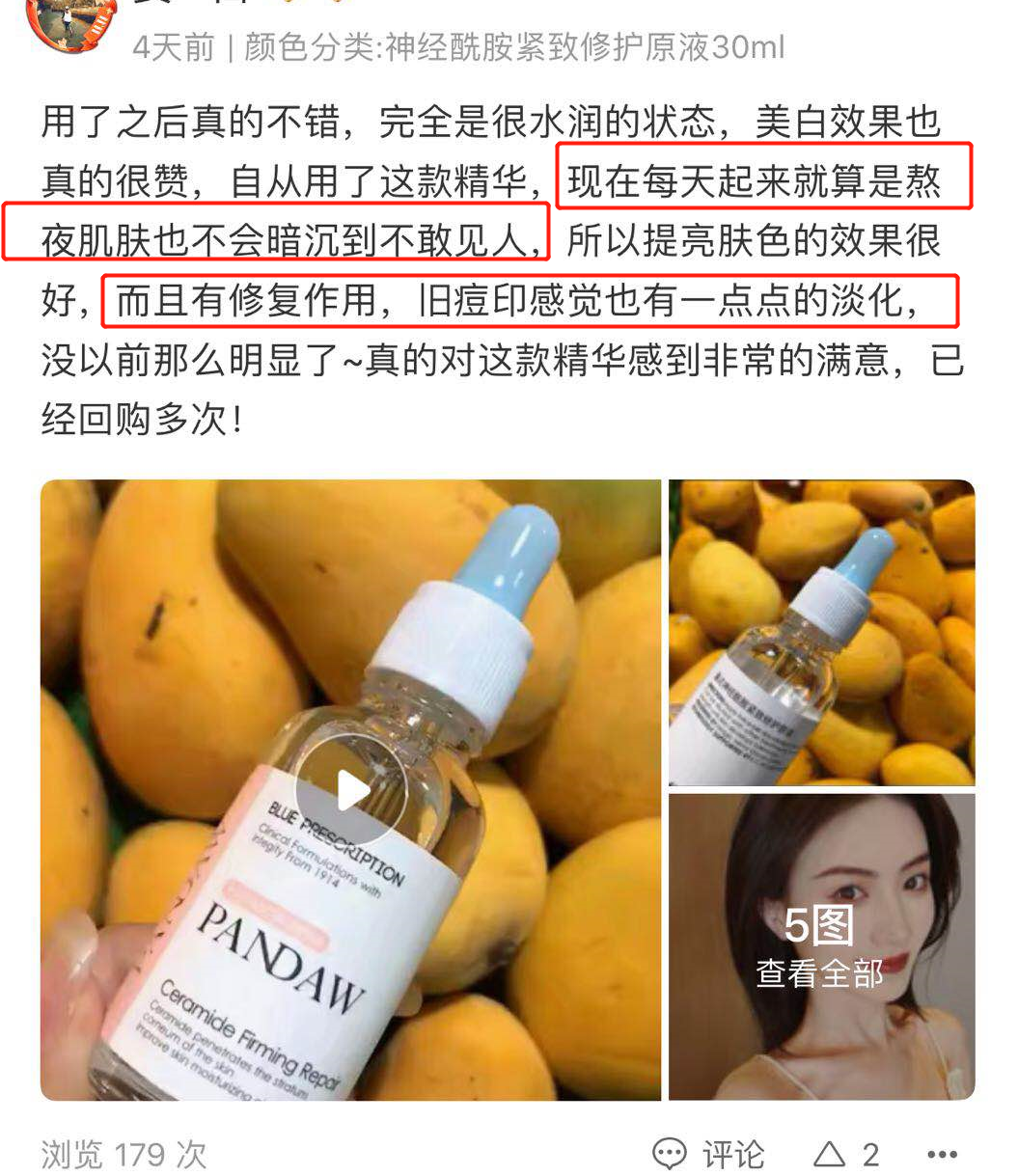 “熬夜肌肤也不会暗沉,痘印也变淡了”