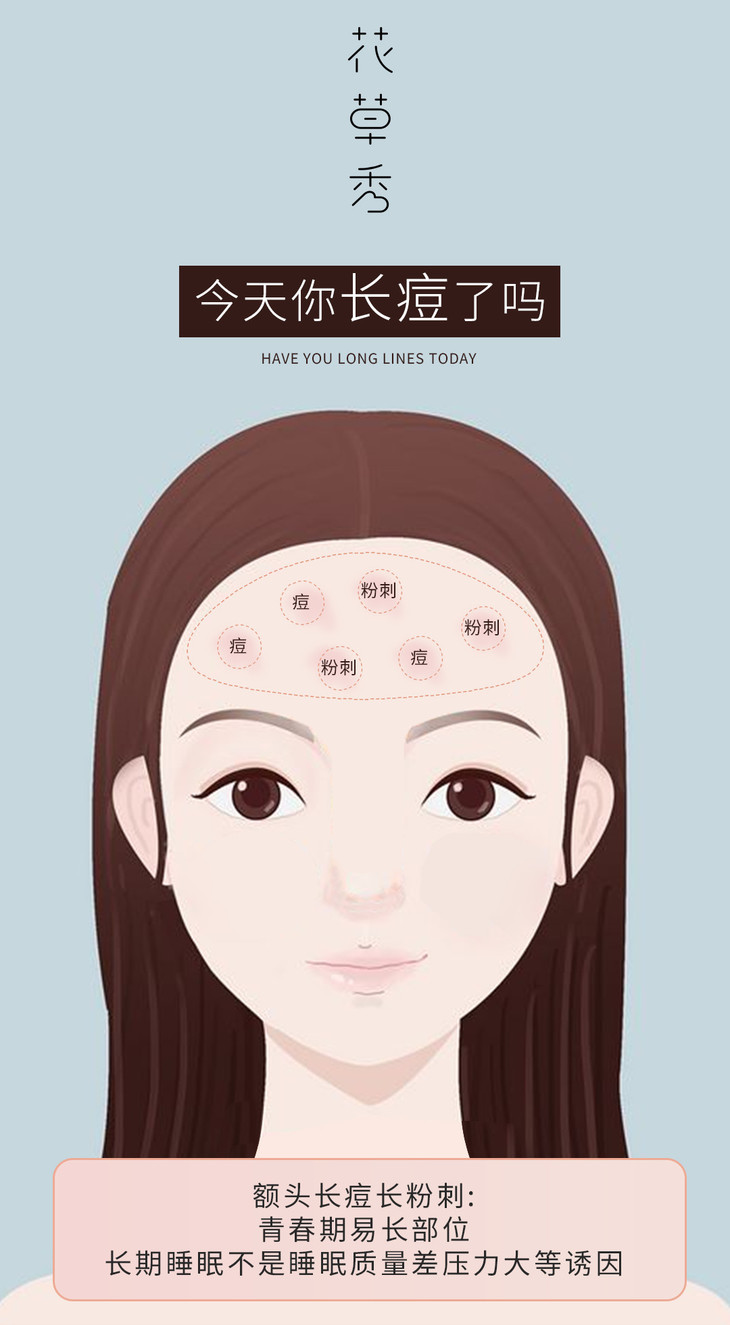 来看看这几张痘痘位置分布图,不同位置的长痘原因都不一样,你是属于哪一类呢?只有先了解自己,才能由内而外治疗好痘痘哦~