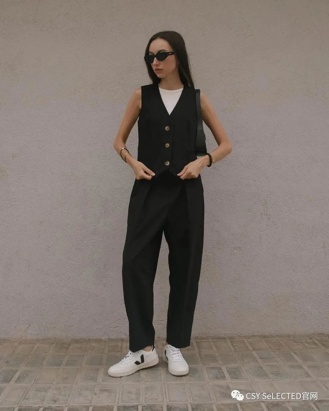 方案4:黑+白+配饰点亮