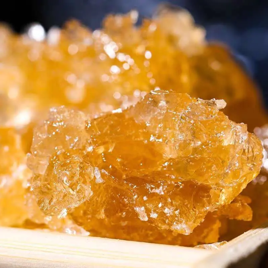 色泽金黄剔透,就像未打磨的黄宝石