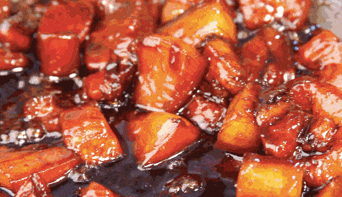 制作步骤:五花肉切成方块(排骨小段),锅里加入碾碎的云南老冰糖和水,不停翻炒,关注色泽变化,当颜色变成深红色,立即加入半碗开水,稀释并降温,做出来的糖色水就像红酒一样的颜色。