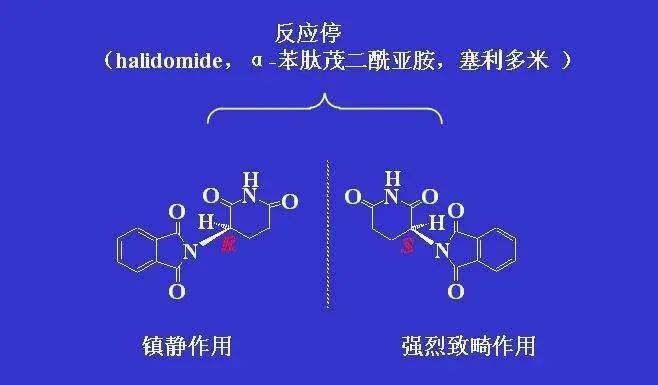 科学家深入研究后发现,问题出在了“反应停”上,是药物中的主要作用成分沙利度胺造成的婴儿畸形。它是一种具有对映化合物的混合物,其中的(R)构型异构体是强力的镇静剂,而(S)构型异构体却是强烈的致畸剂 。