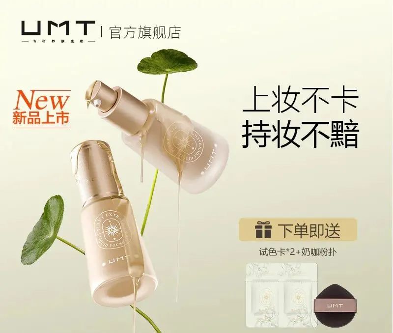 UMT水光瓶粉底液,妆护同源、植萃赋能,含有福瑞达保湿专利透明质酸钠,外加更好吸收的天然低分子银耳多糖,满满当当的精华成分全在里面,养肤不闷痘。