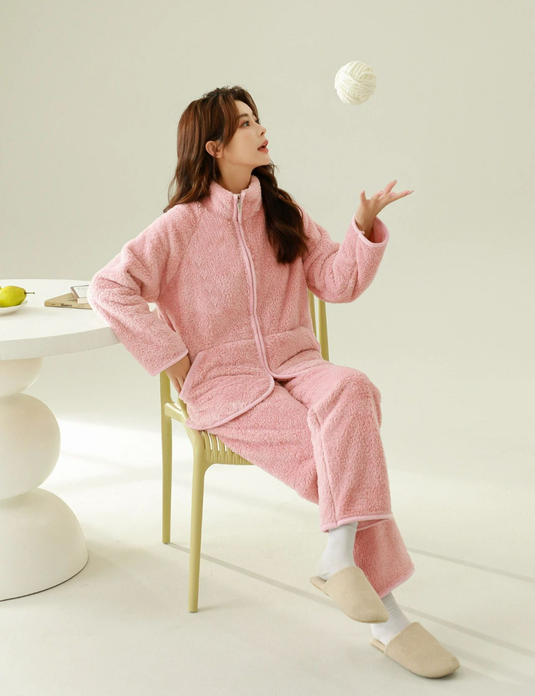 这款家居服除了产品本身质量过硬之外,设计我也很喜欢。一共有 2 种款式,分别是:翻领纽扣款、立领拉链款。