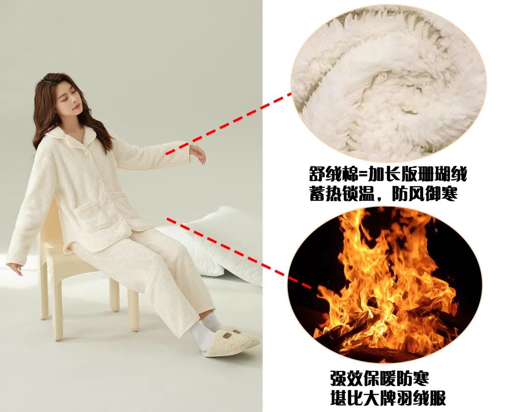 作为秋冬居家的抗寒主力军,保暖自然也是它的“必修课”。这套居家服采用了细腻厚实的加长版珊瑚绒,一看就很暖和~小编用这款家居服和普通的对比一下,看看这绒毛,穿在身上,一件顶 3 件!即使到了零度的天气,里面穿一件简单的打底T恤,也很暖和~