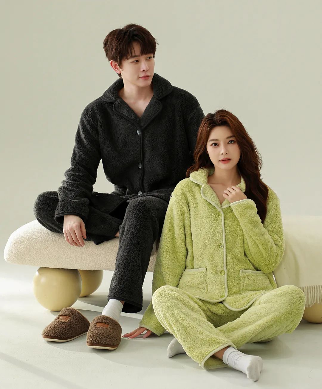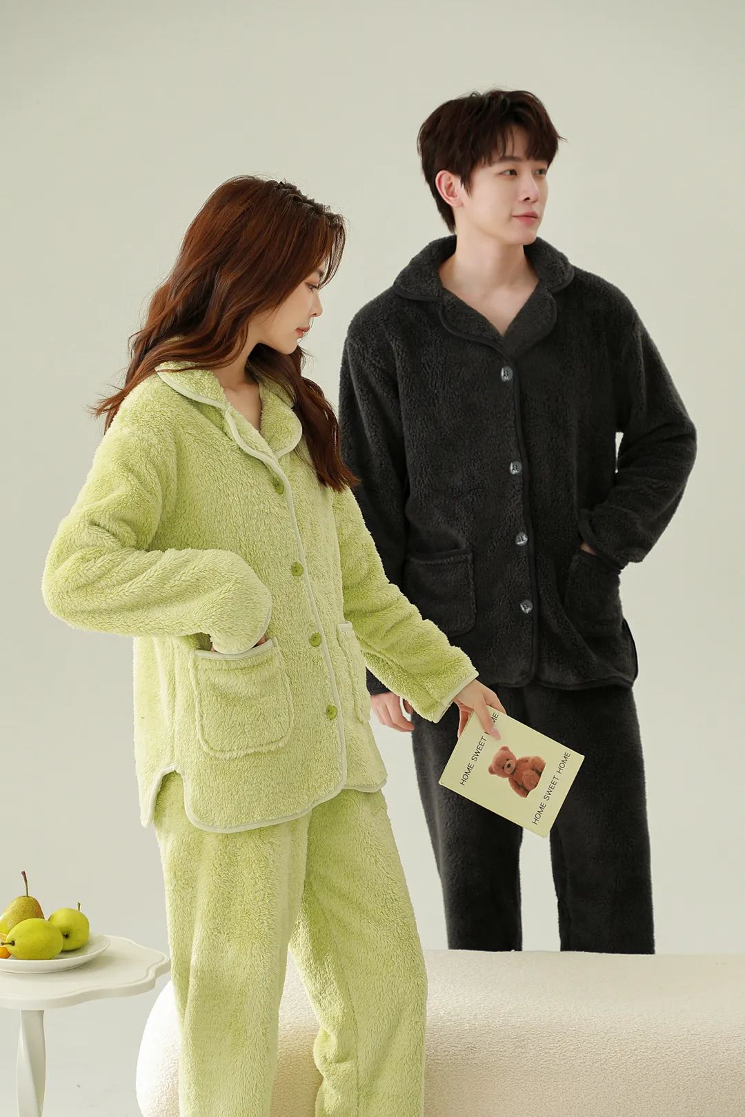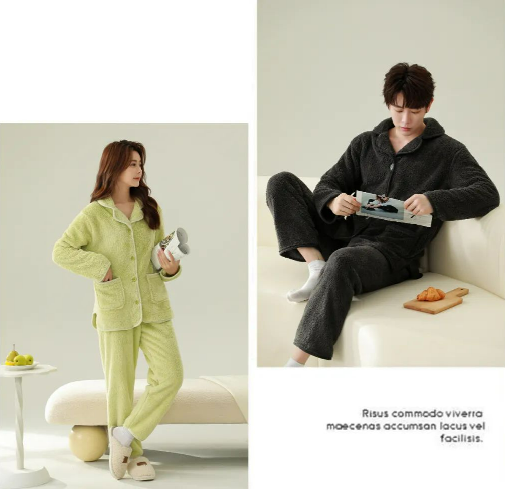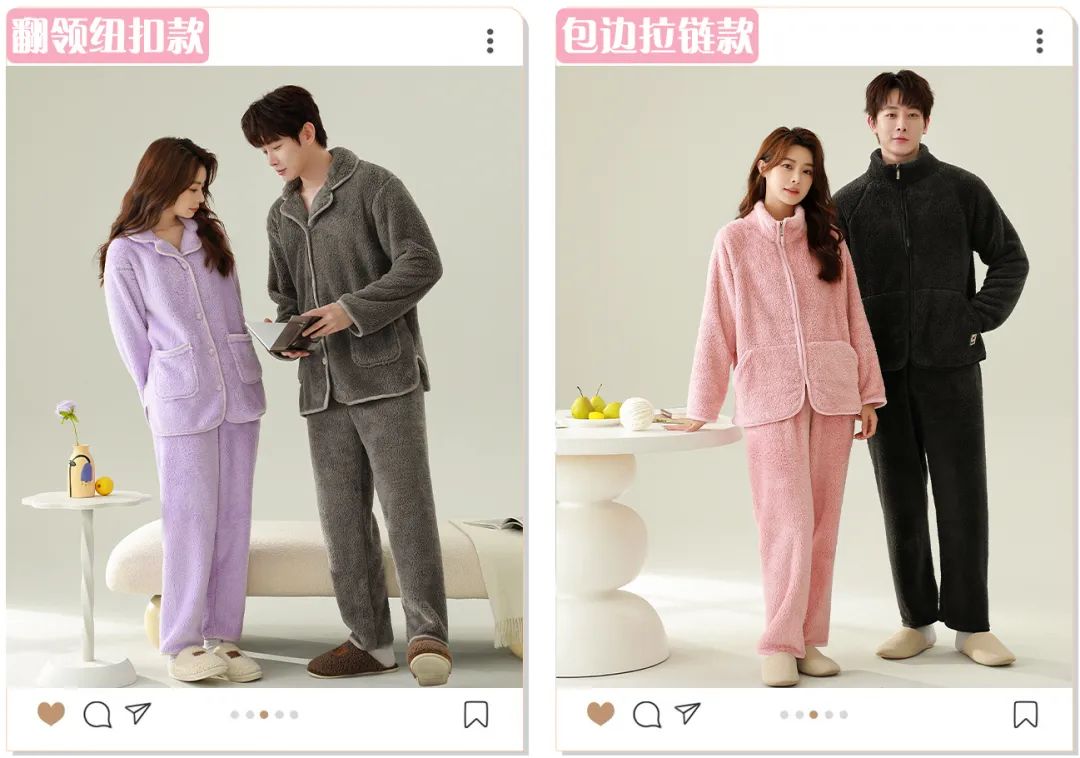 褪去夏季凉爽的衣服,终于可以换上长款/毛绒绒的家居服了。毕竟,外面的衣服是穿给别人看的,回到家的衣服才是为自己穿的。女人爱不爱自己,要看她在家穿什么~所以,秋冬季的家居服自然也要一身舒适、暖和又好看啦!为了让大家在寒冷的秋冬,既时髦又美丽还能保暖,我地毯式找了一堆睡衣进行筛选,终于选定了这 2 款【鹿小雯 情侣珊瑚绒家居服套】。舒服的家居服我穿过很多,但这样舒服的还是头一回,甚至有种相见恨晚的感觉~它比起我们常见的摇粒绒、羊羔绒,触感都要柔软很多。