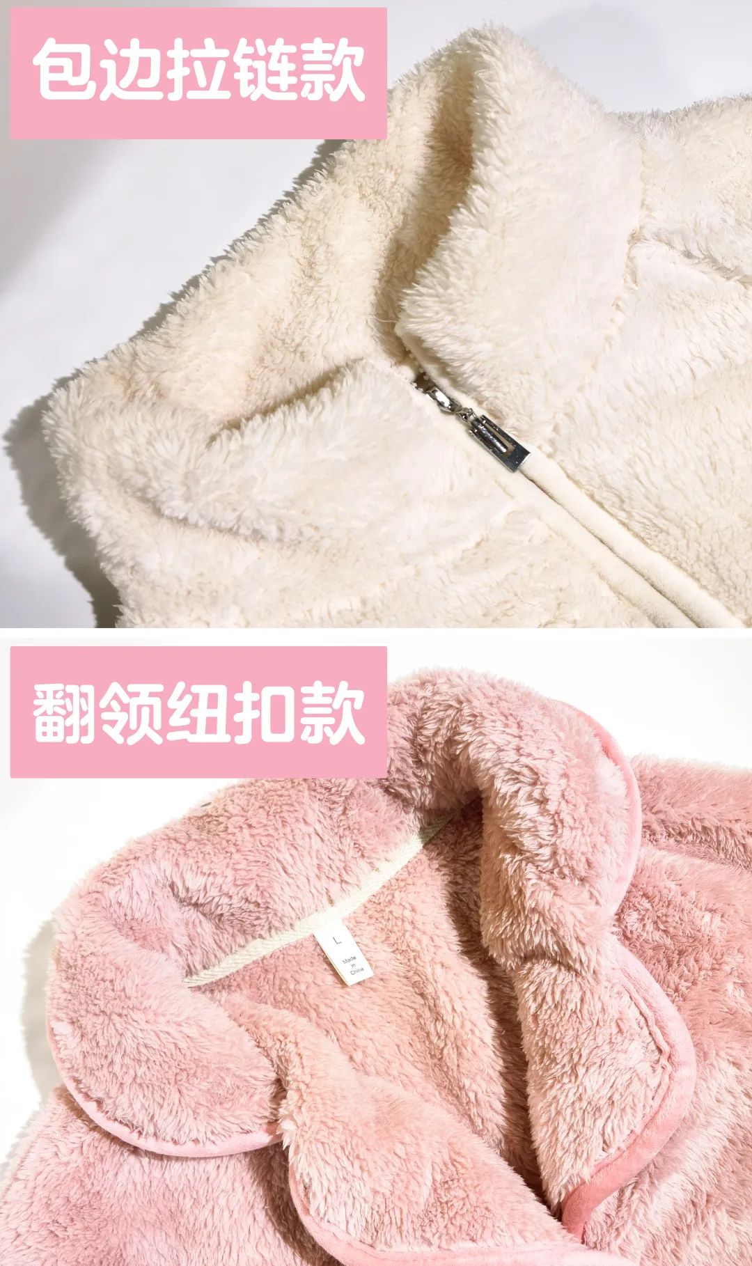 而且里外都是细细密密的绒毛,身体被柔软的绒毛包裹,看着就很舒适、保暖。颜色也很多,款式也有 2 种(翻领纽扣、立领拉链),还是男女同款的,妥妥的居家慵懒风。