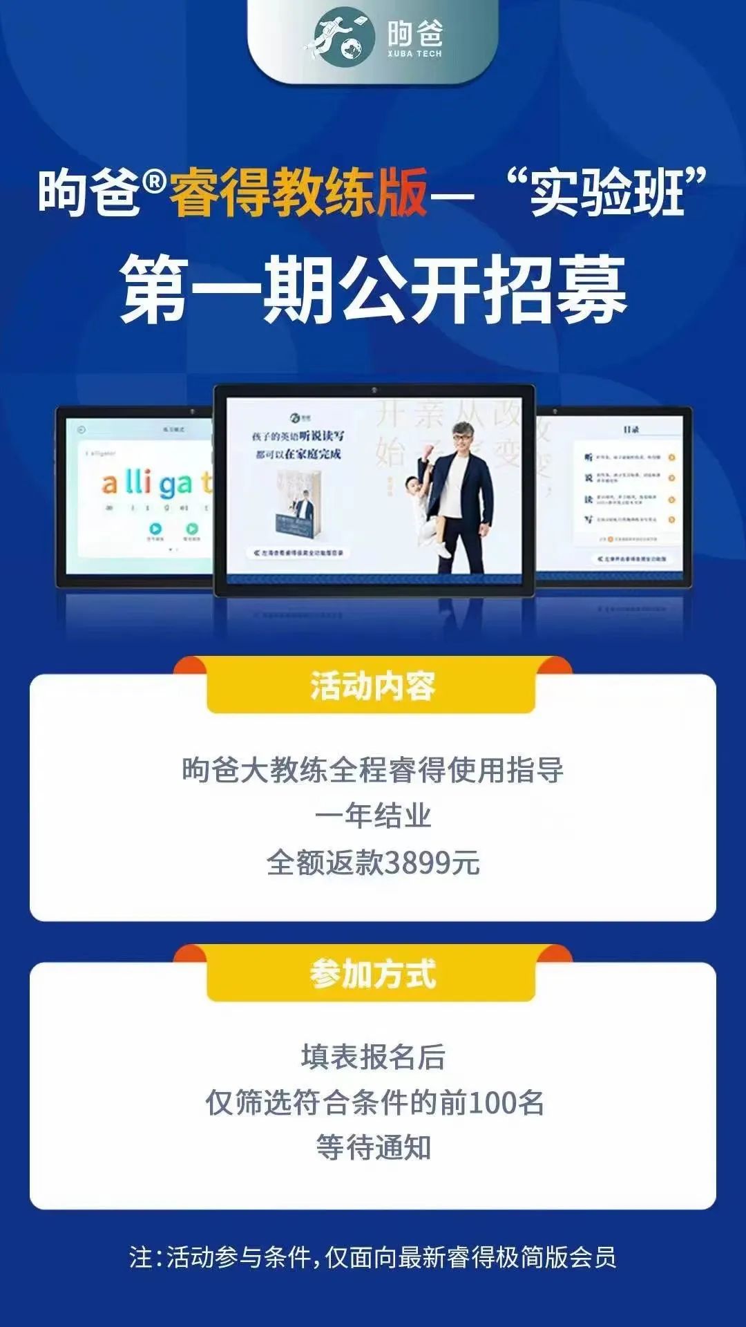 7.首期睿得“实验班”仅面向最新睿得极简版会员,是全新用户才可以享受的福利。