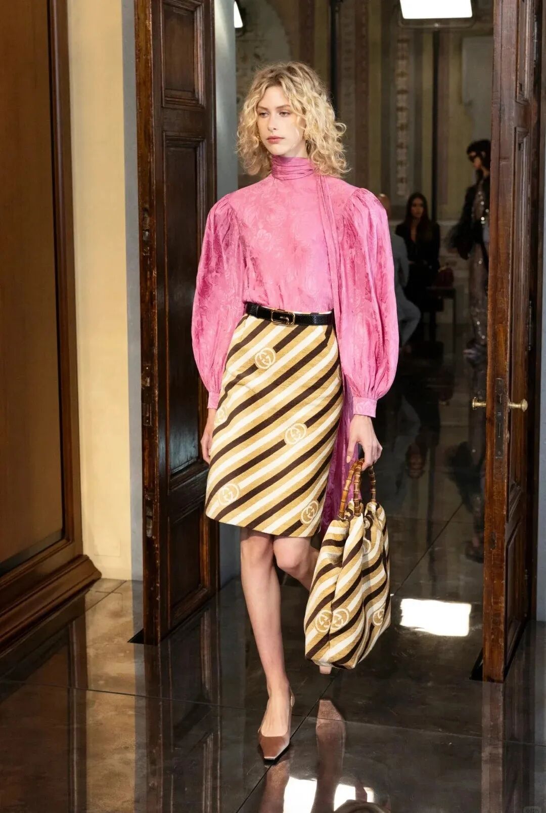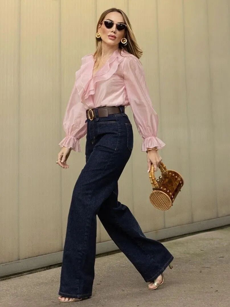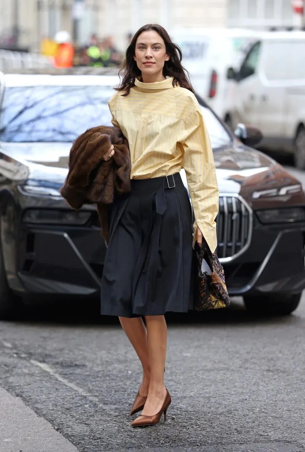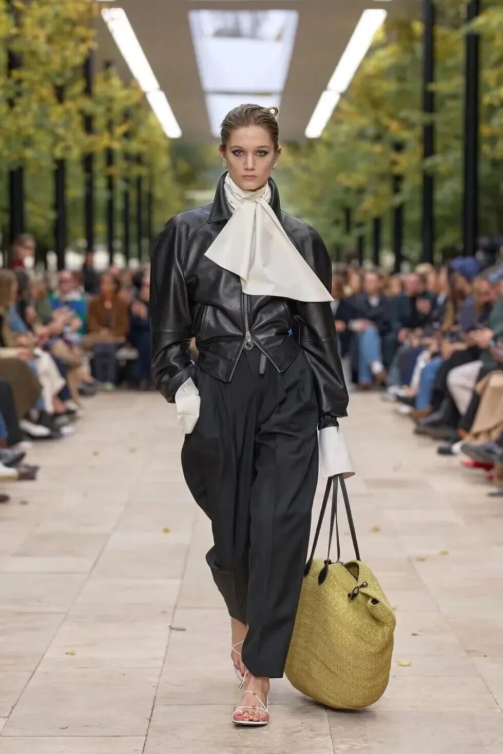 真丝或雪纺材质的飘带衬衫更轻盈飘逸,
