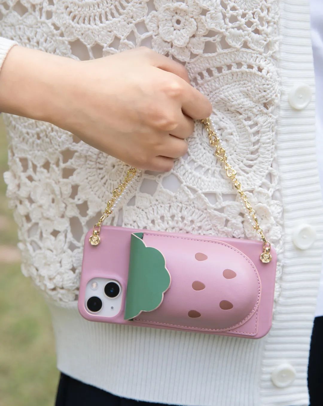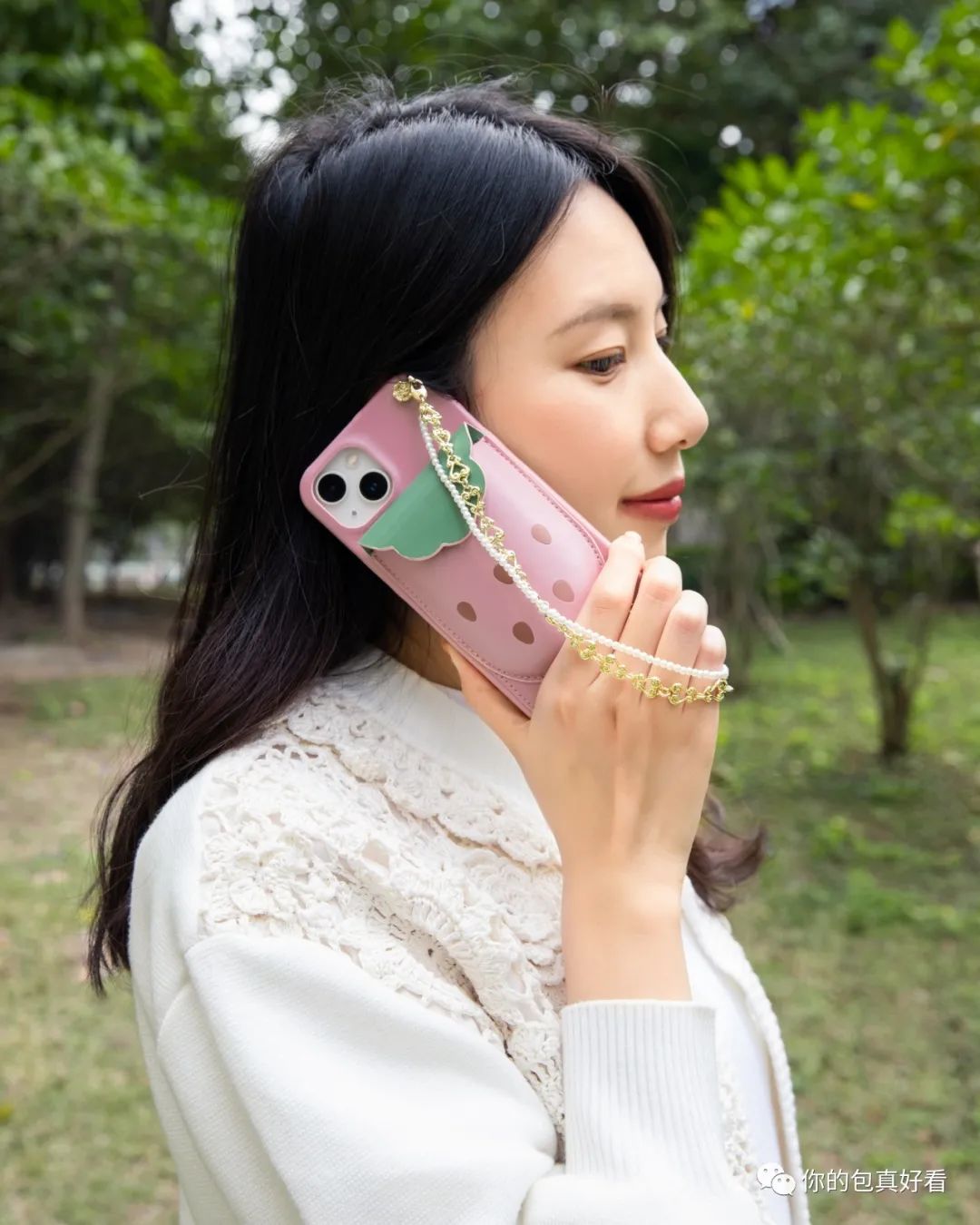 SHAOO SHADOW很擅长将时装饰品与皮具融合在一起,它们家的手机壳大多都有自己的小心机,和市面上的不太一样,我手上的草莓手机壳就是真皮款,摸起来软软的,比塑料壳手感更好。